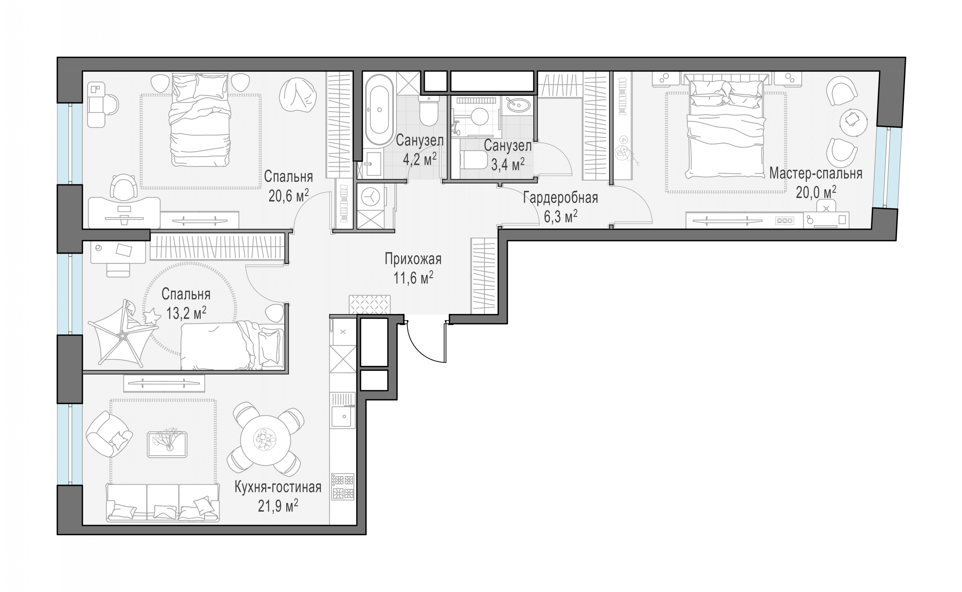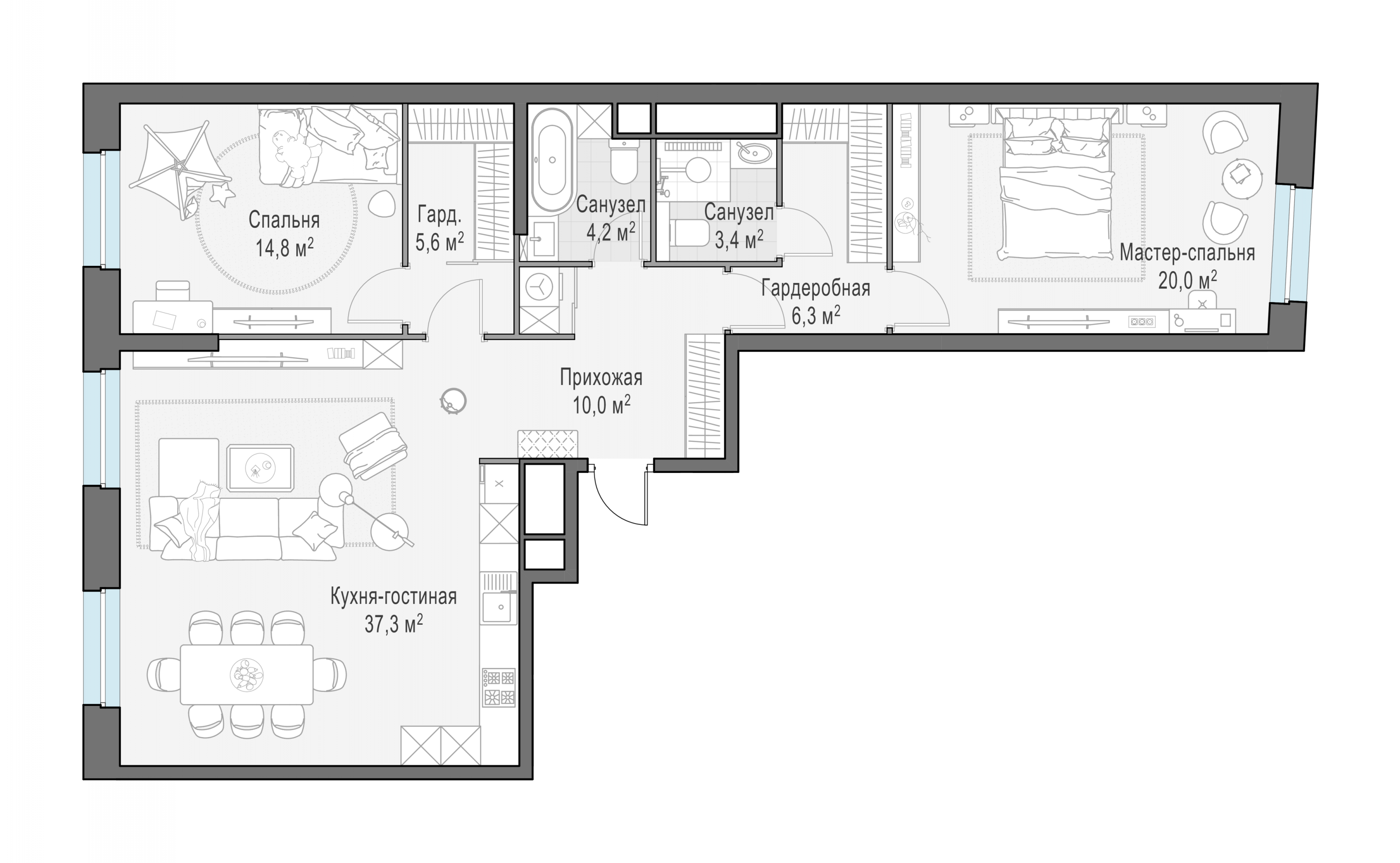 В продаже Квартира №1308 площадью 102.2 м² стоимостью 34 520 000 ₽ в ЖК Кутузов Град от застройщика Инград ✓ Этаж: 20 ✓ Без отделки ✓ Дом сдан ✓ Планировка на сайте