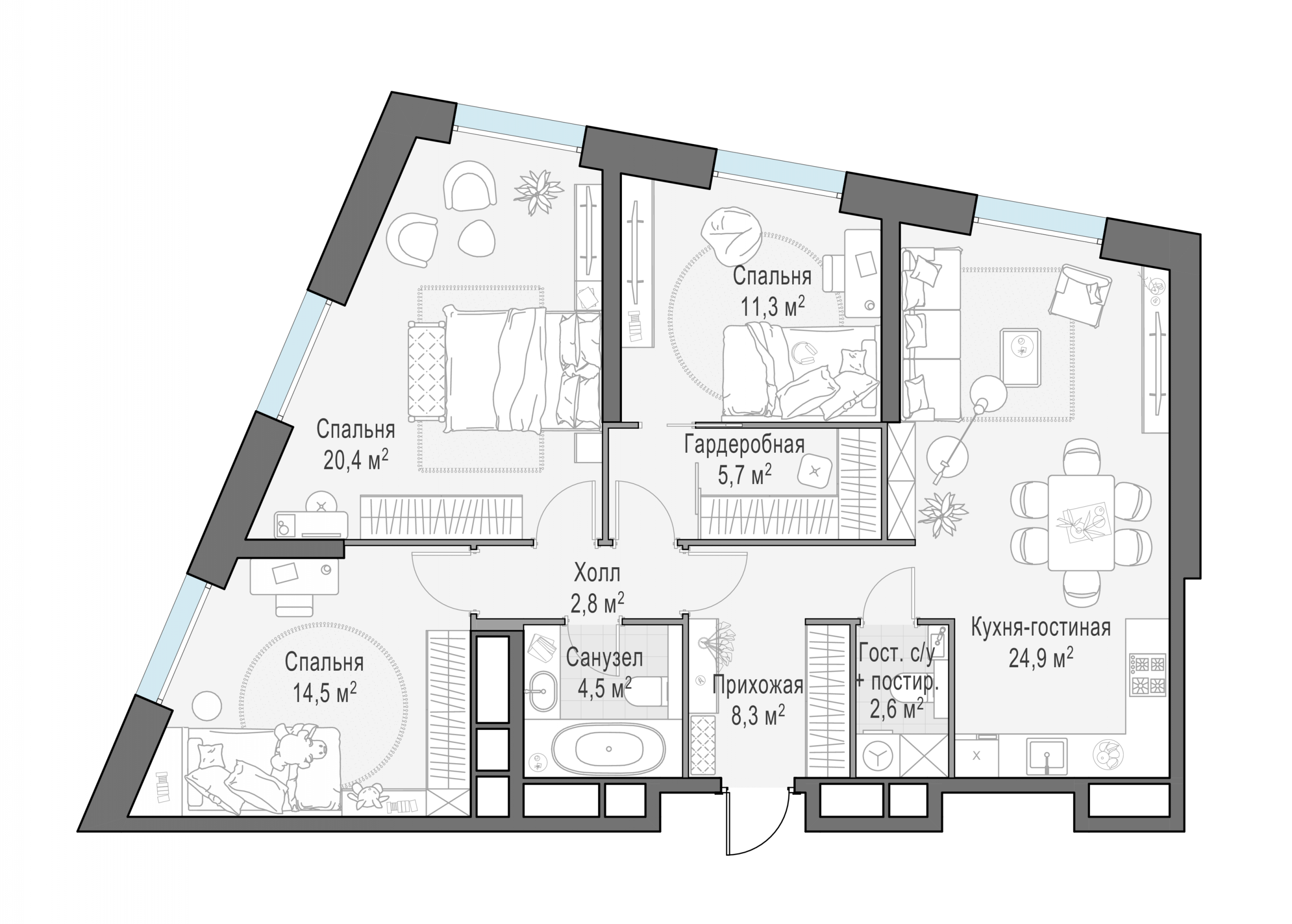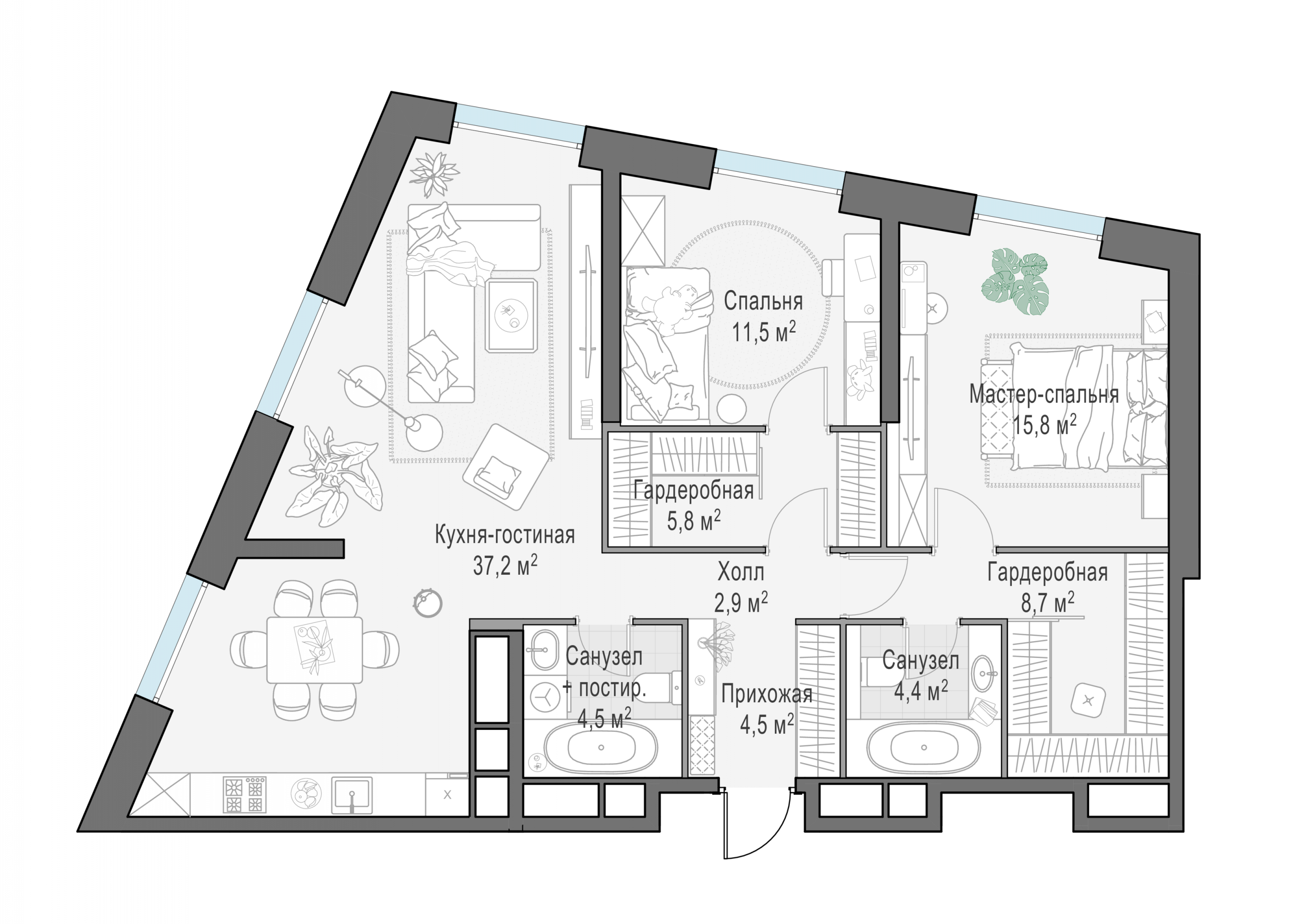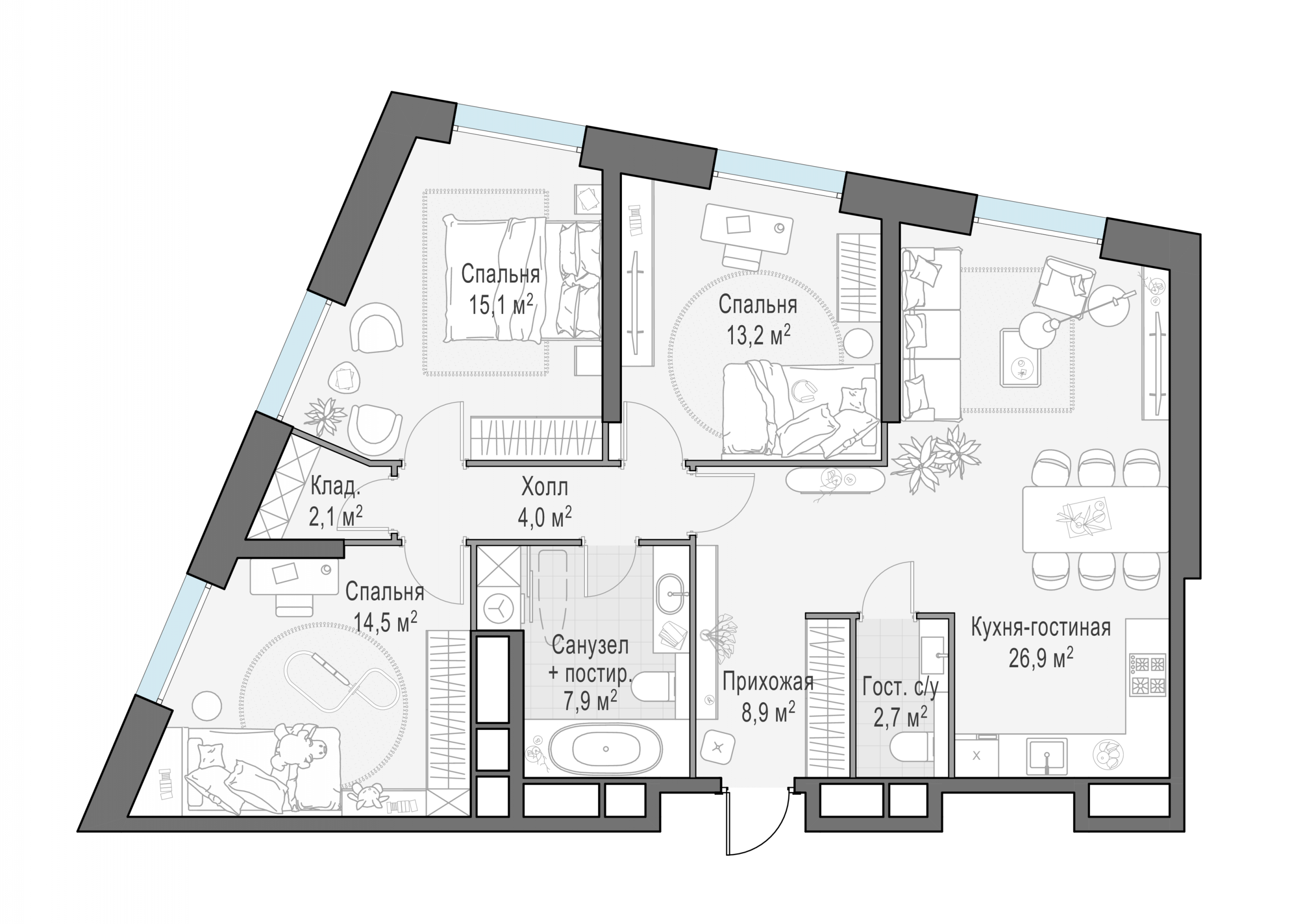 Представленные планировочные решения носят иллюстративный характер. Застройщик передаёт объект с планировкой, указанной в договоре участия в долевом строительстве. Любая перепланировка должна соответствовать требованиям государственных органов.