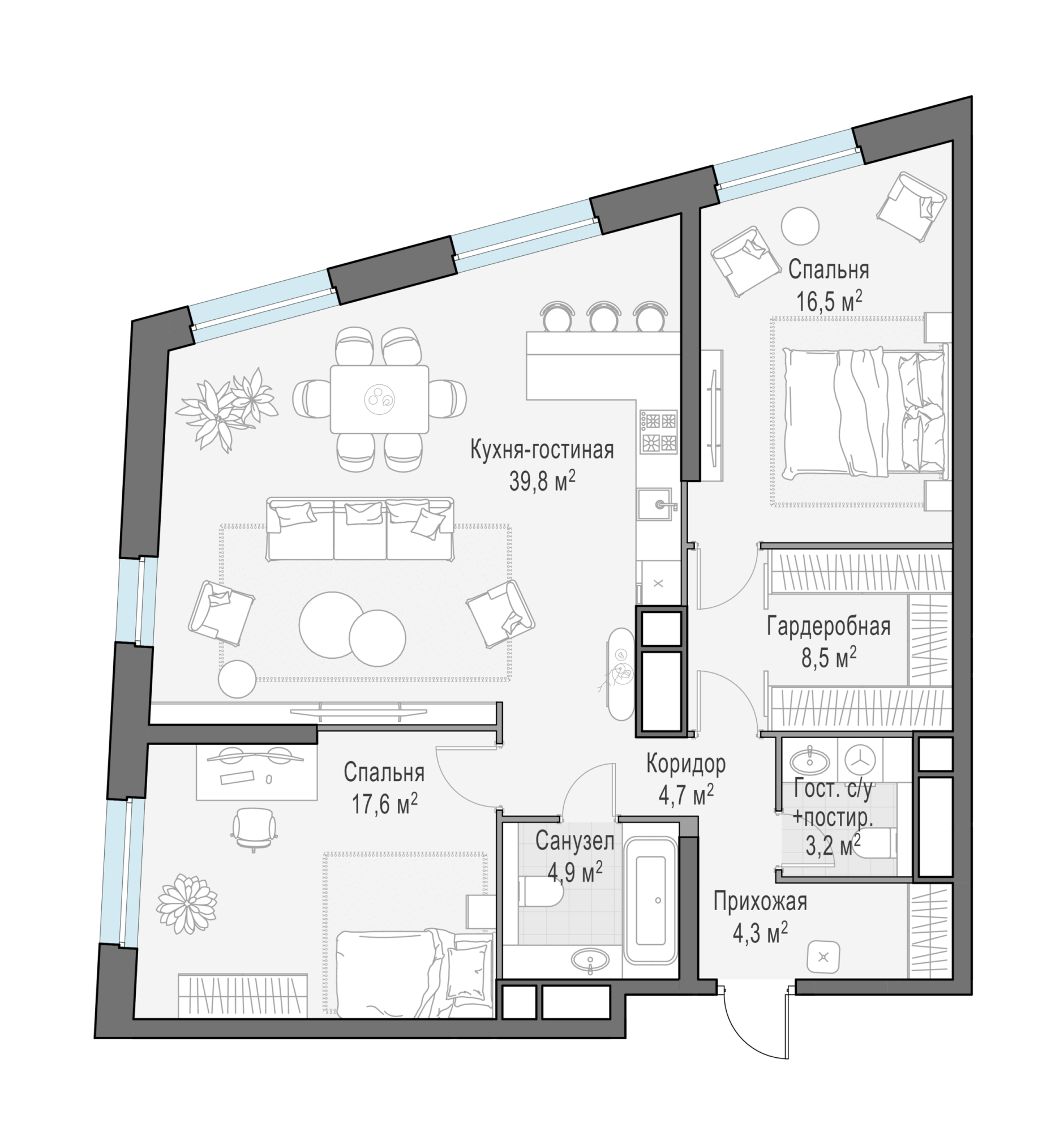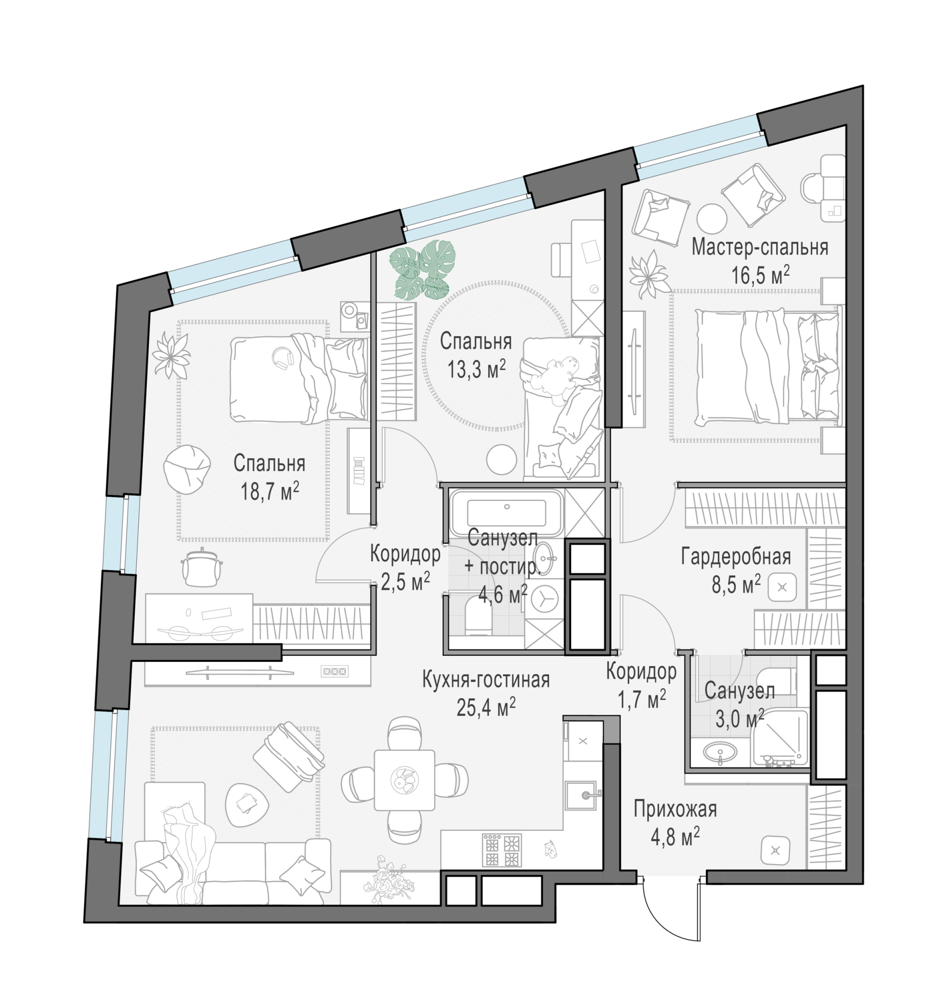 Представленные планировочные решения носят иллюстративный характер. Застройщик передаёт объект с планировкой, указанной в договоре участия в долевом строительстве. Любая перепланировка должна соответствовать требованиям государственных органов.