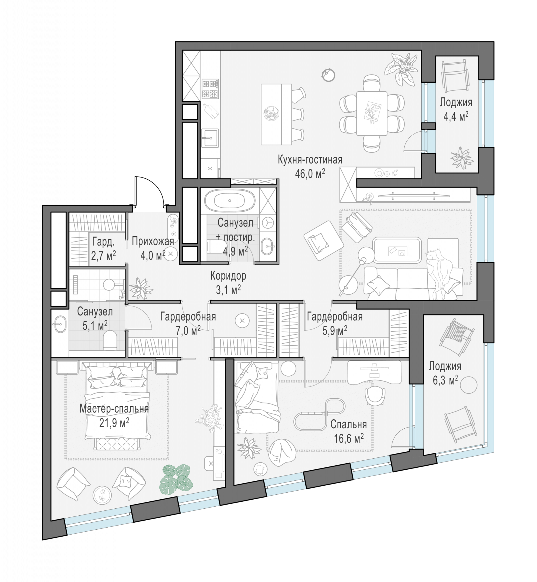 Представленные планировочные решения носят иллюстративный характер. Застройщик передаёт объект с планировкой, указанной в договоре участия в долевом строительстве. Любая перепланировка должна соответствовать требованиям государственных органов.