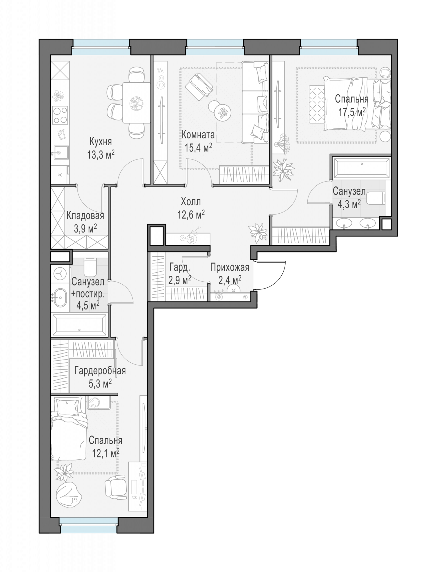 В продаже Квартира №865 площадью 93.5 м² стоимостью 40 230 000 ₽ в ЖК Кутузов Град от застройщика Инград ✓ Этаж: 28 ✓ Без отделки ✓ Дом сдан ✓ Планировка на сайте