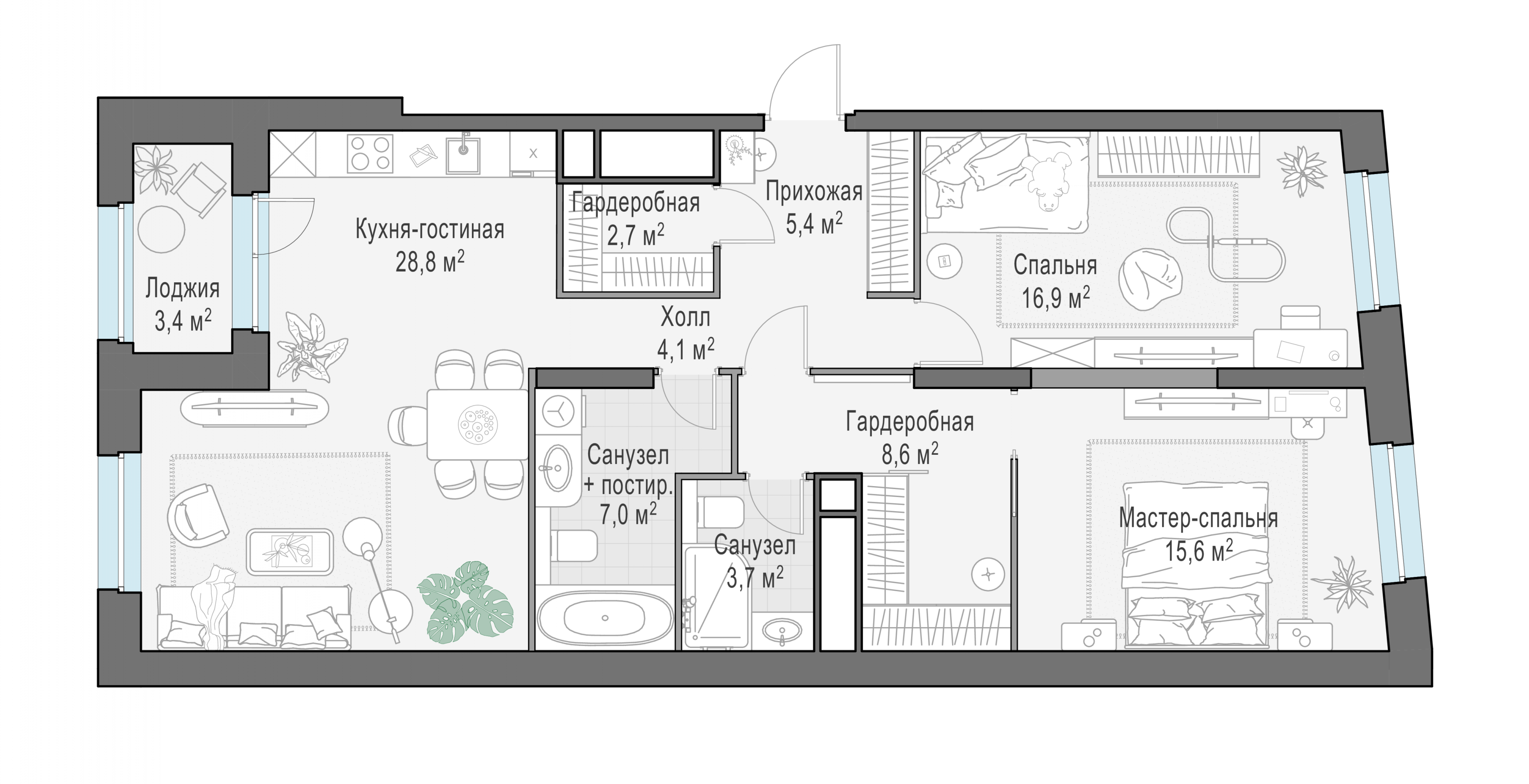 Представленные планировочные решения носят иллюстративный характер. Застройщик передаёт объект с планировкой, указанной в договоре участия в долевом строительстве. Любая перепланировка должна соответствовать требованиям государственных органов.