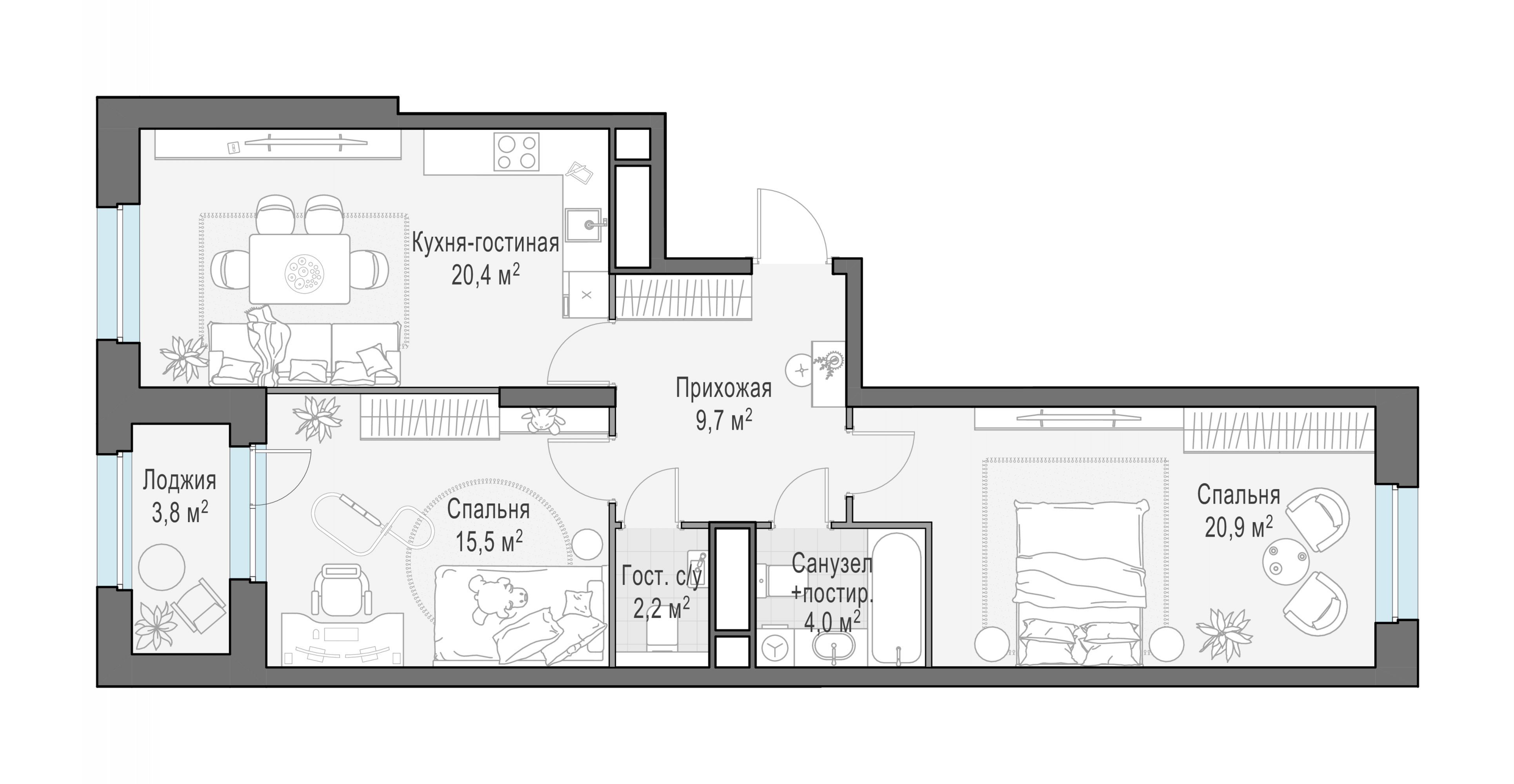 Представленные планировочные решения носят иллюстративный характер. Застройщик передаёт объект с планировкой, указанной в договоре участия в долевом строительстве. Любая перепланировка должна соответствовать требованиям государственных органов.