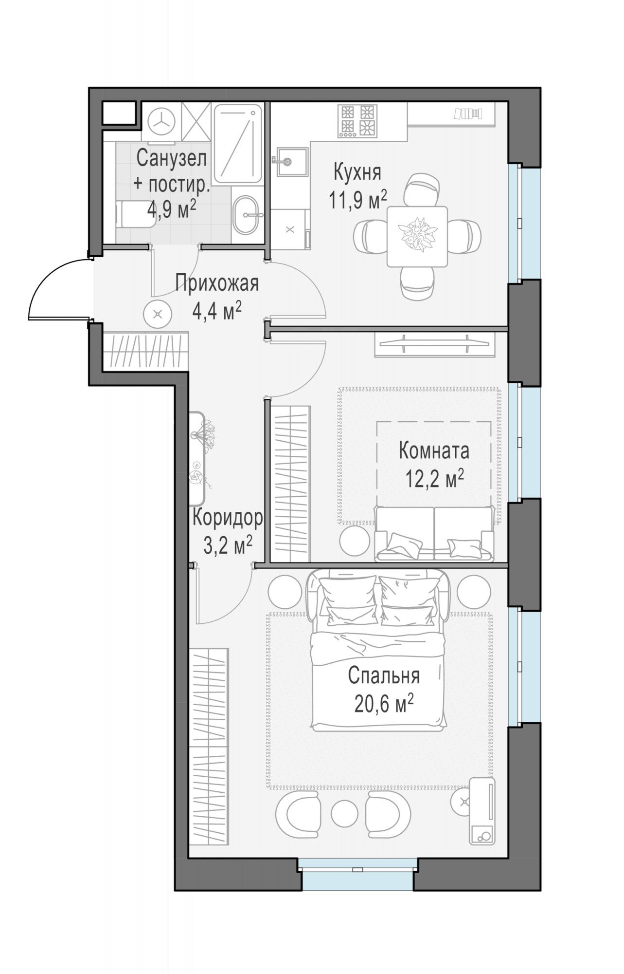 Представленные планировочные решения носят иллюстративный характер. Застройщик передаёт объект с планировкой, указанной в договоре участия в долевом строительстве. Любая перепланировка должна соответствовать требованиям государственных органов.