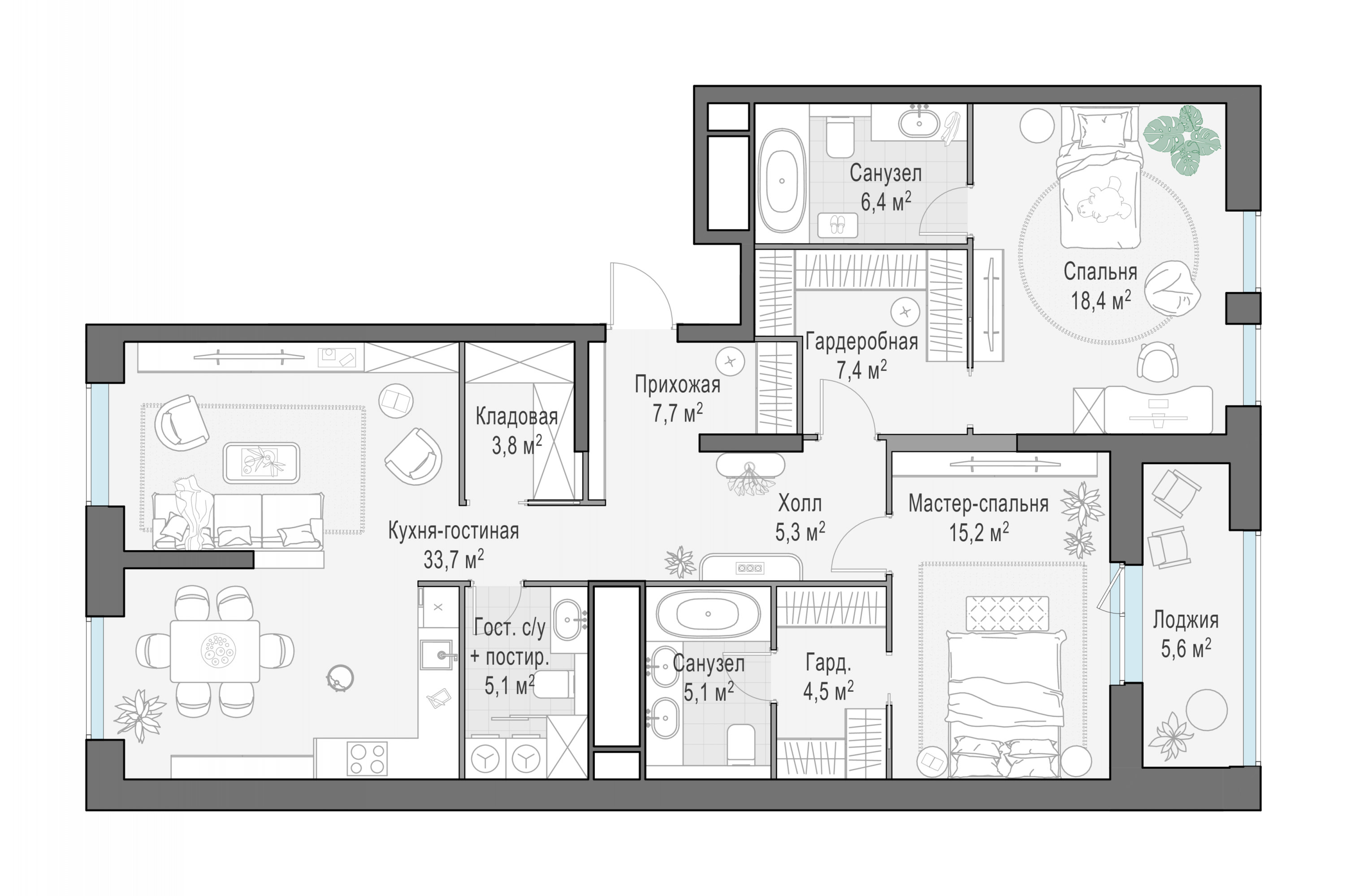 Представленные планировочные решения носят иллюстративный характер. Застройщик передаёт объект с планировкой, указанной в договоре участия в долевом строительстве. Любая перепланировка должна соответствовать требованиям государственных органов.