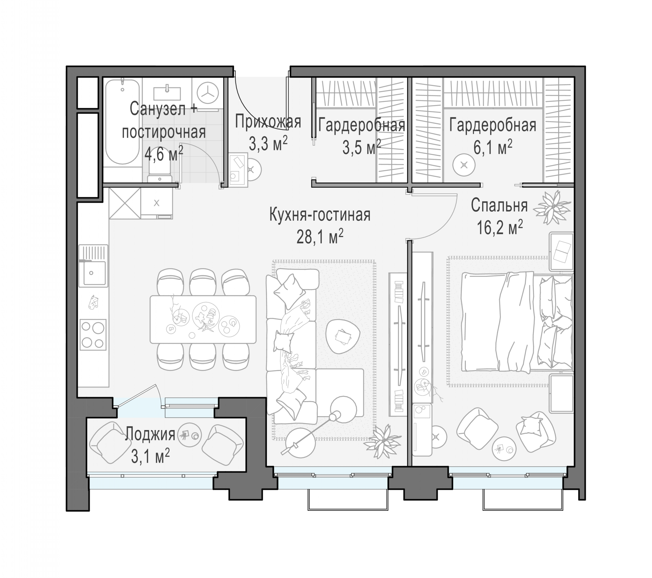 Представленные планировочные решения носят иллюстративный характер. Застройщик передаёт объект с планировкой, указанной в договоре участия в долевом строительстве. Любая перепланировка должна соответствовать требованиям государственных органов.