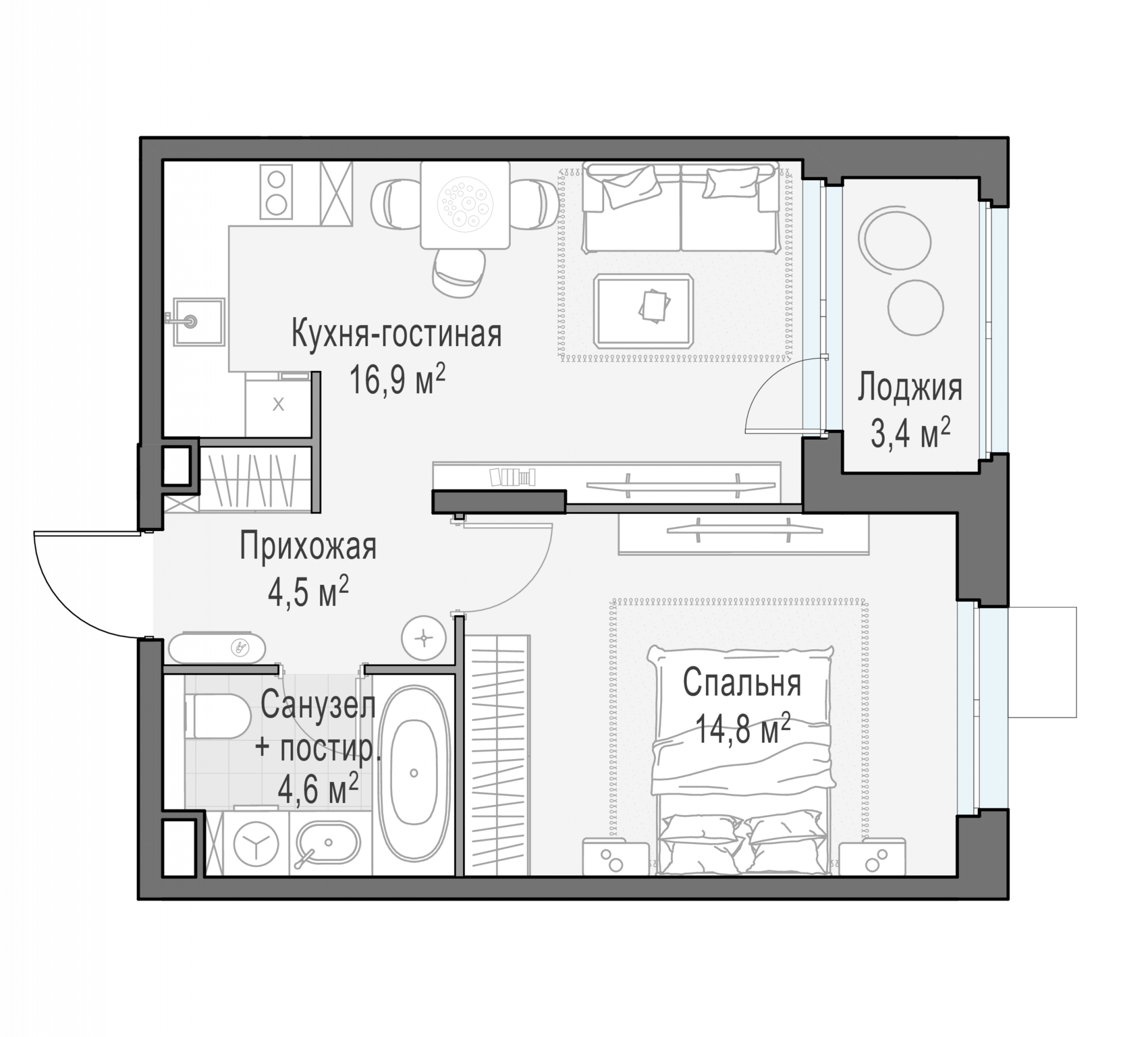Представленные планировочные решения носят иллюстративный характер. Застройщик передаёт объект с планировкой, указанной в договоре участия в долевом строительстве. Любая перепланировка должна соответствовать требованиям государственных органов.