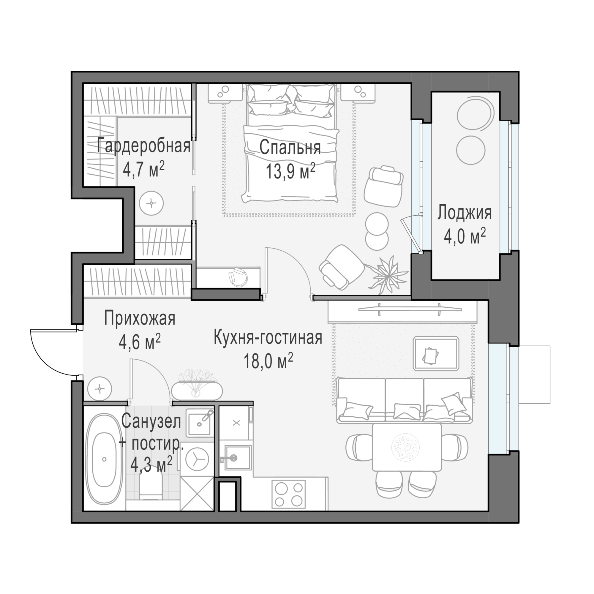 Представленные планировочные решения носят иллюстративный характер. Застройщик передаёт объект с планировкой, указанной в договоре участия в долевом строительстве. Любая перепланировка должна соответствовать требованиям государственных органов.