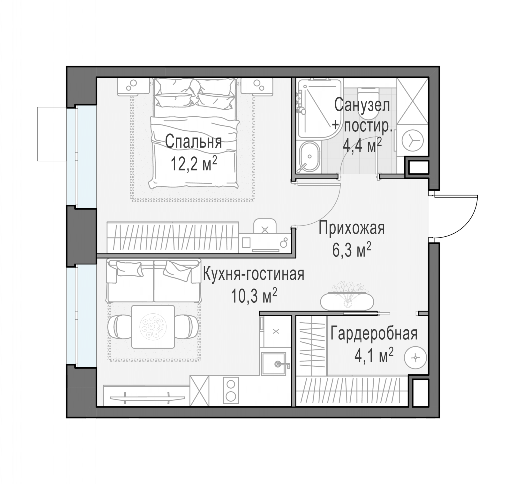 Представленные планировочные решения носят иллюстративный характер. Застройщик передаёт объект с планировкой, указанной в договоре участия в долевом строительстве. Любая перепланировка должна соответствовать требованиям государственных органов.