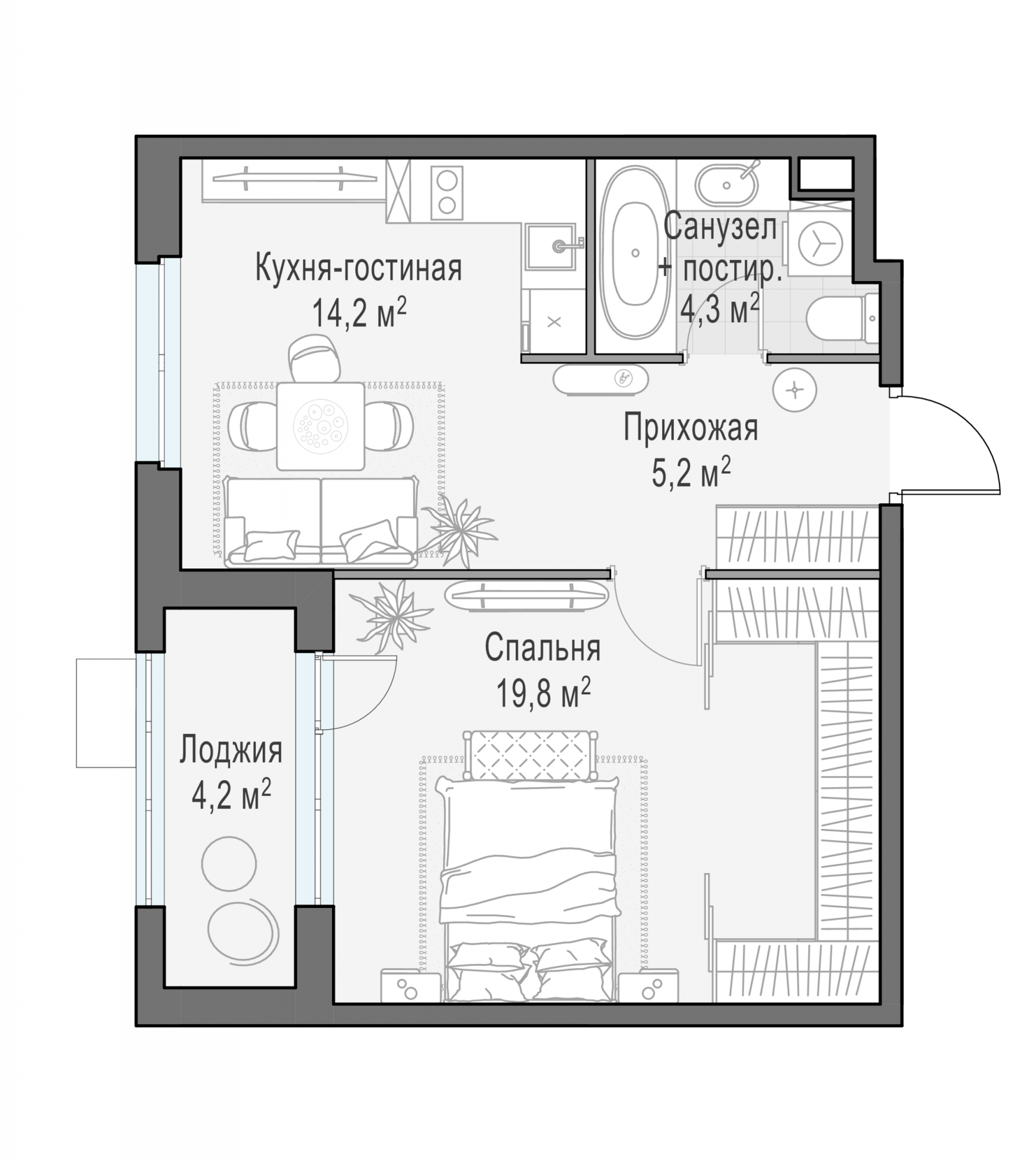 Представленные планировочные решения носят иллюстративный характер. Застройщик передаёт объект с планировкой, указанной в договоре участия в долевом строительстве. Любая перепланировка должна соответствовать требованиям государственных органов.