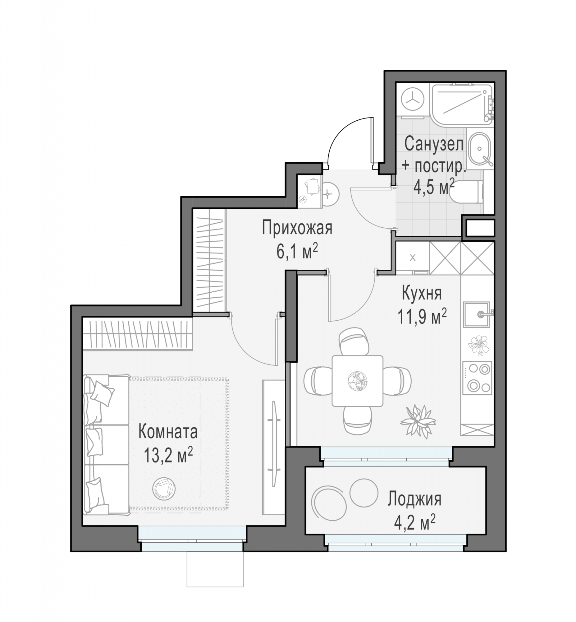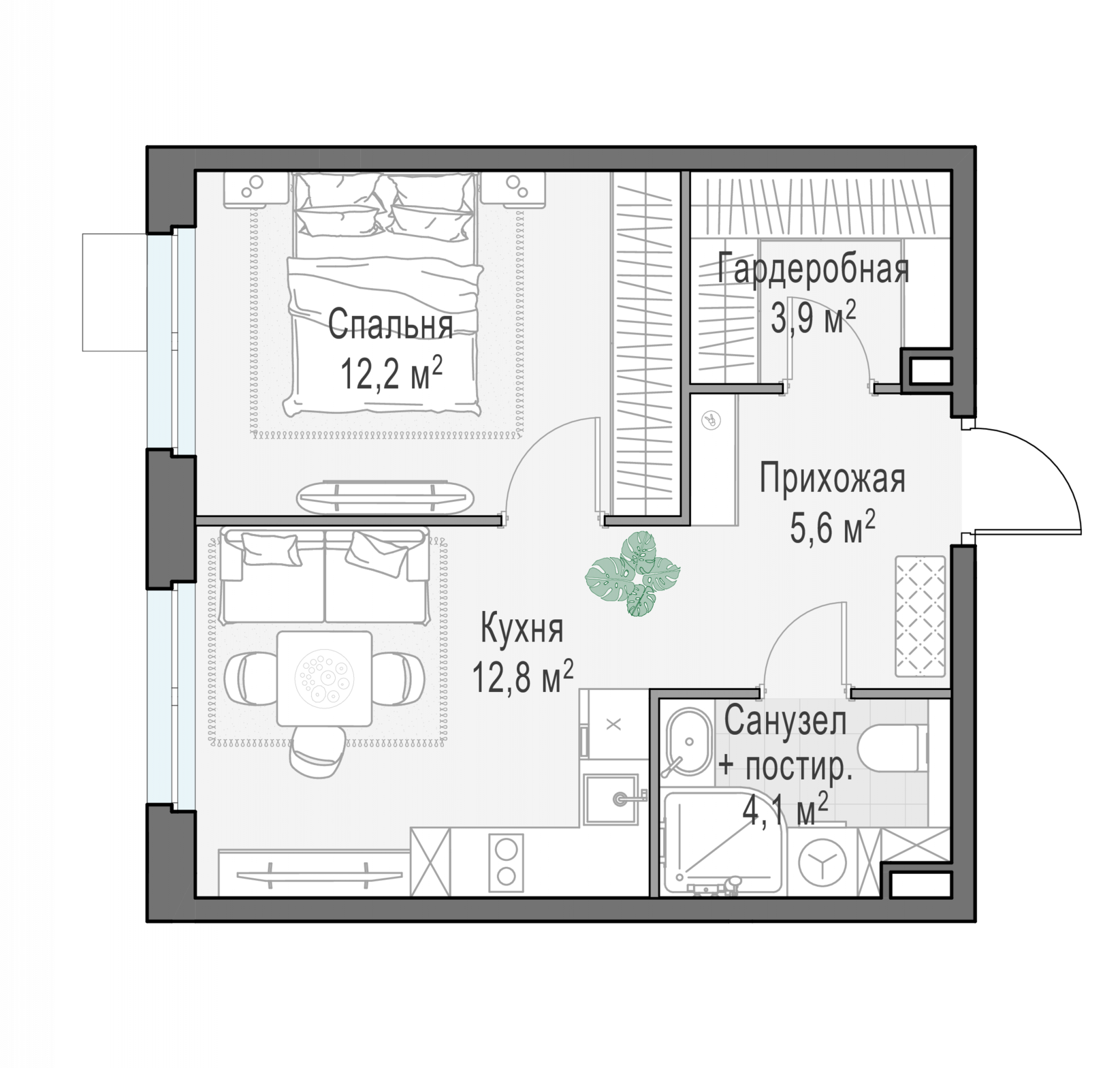 Представленные планировочные решения носят иллюстративный характер. Застройщик передаёт объект с планировкой, указанной в договоре участия в долевом строительстве. Любая перепланировка должна соответствовать требованиям государственных органов.