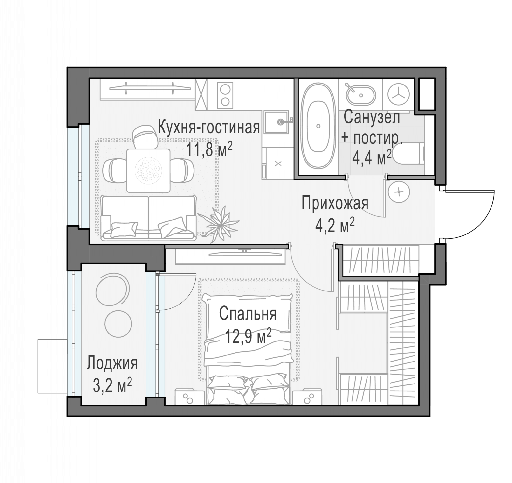 Квартира №123 34.8 м²