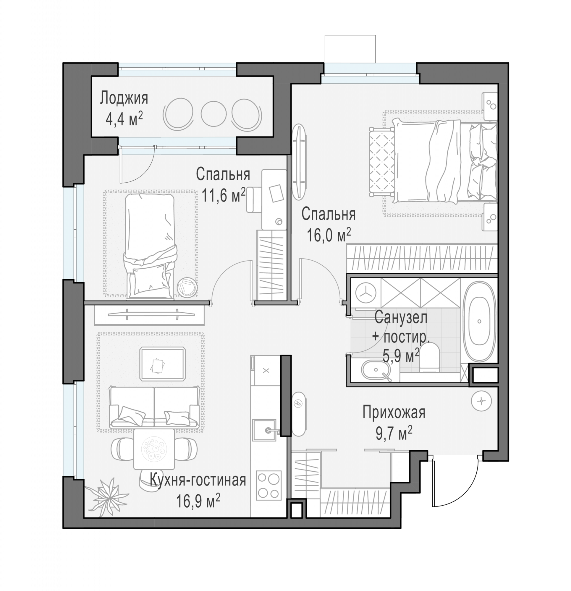Представленные планировочные решения носят иллюстративный характер. Застройщик передаёт объект с планировкой, указанной в договоре участия в долевом строительстве. Любая перепланировка должна соответствовать требованиям государственных органов.
