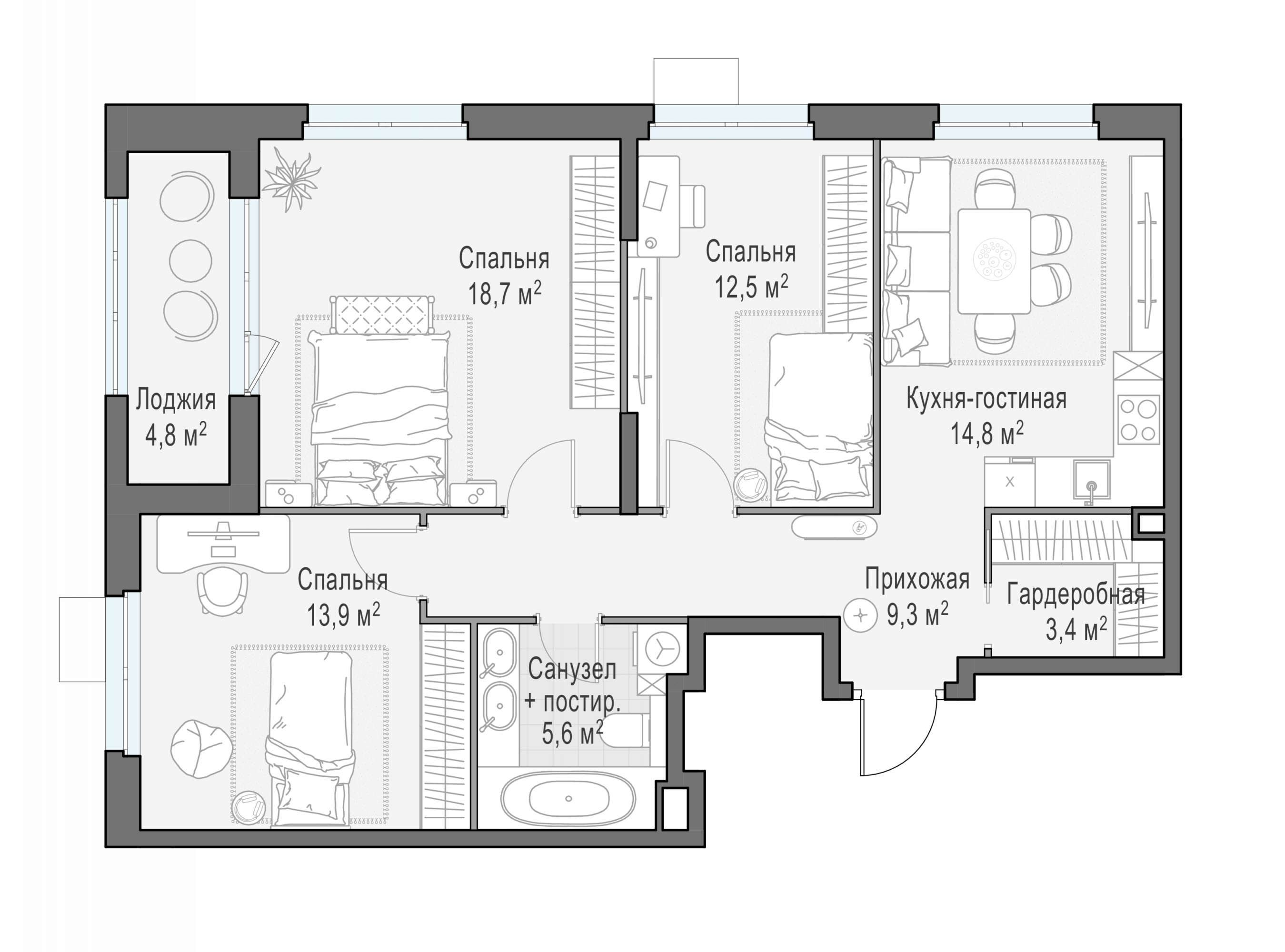 Представленные планировочные решения носят иллюстративный характер. Застройщик передаёт объект с планировкой, указанной в договоре участия в долевом строительстве. Любая перепланировка должна соответствовать требованиям государственных органов.
