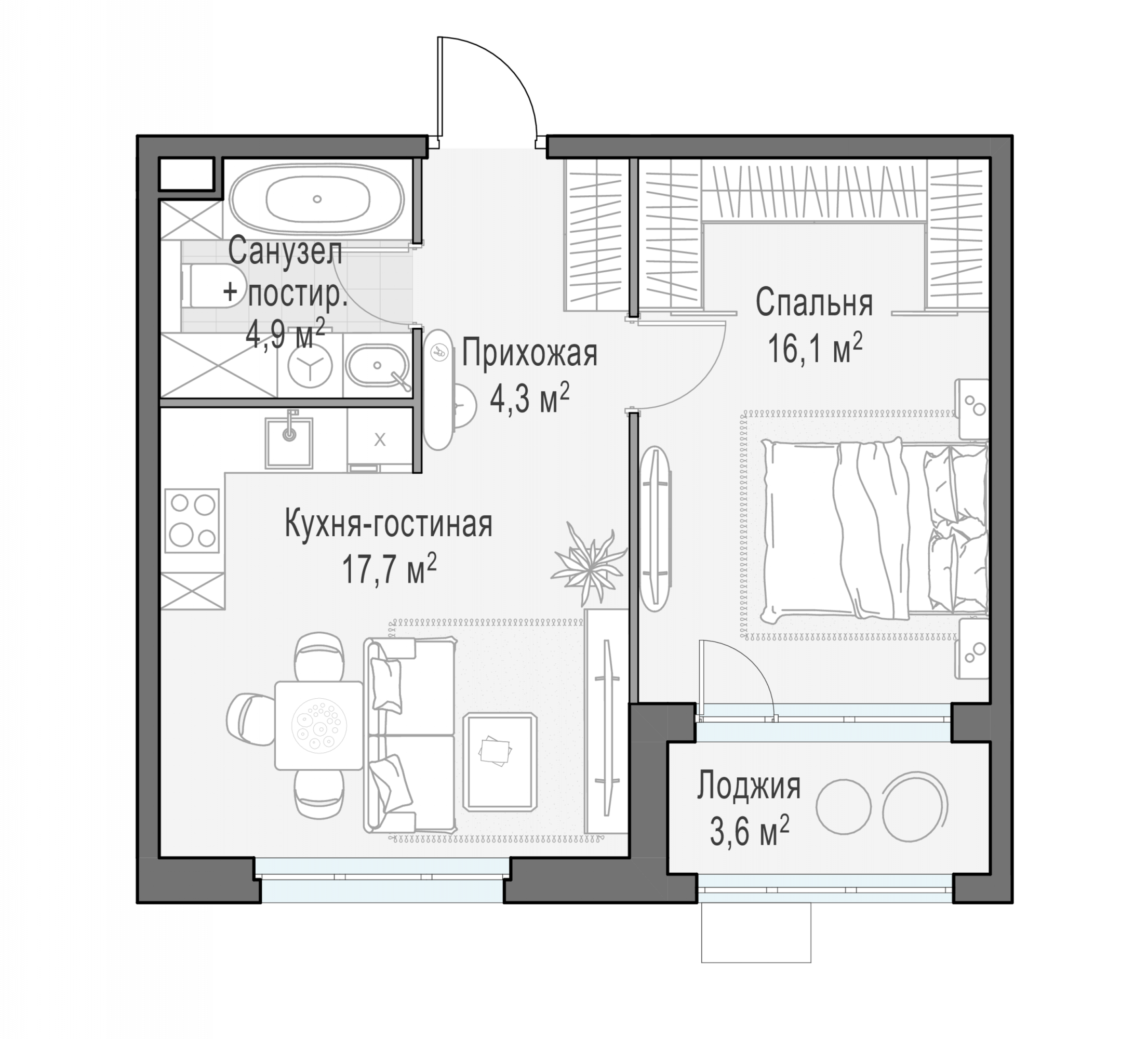 Представленные планировочные решения носят иллюстративный характер. Застройщик передаёт объект с планировкой, указанной в договоре участия в долевом строительстве. Любая перепланировка должна соответствовать требованиям государственных органов.