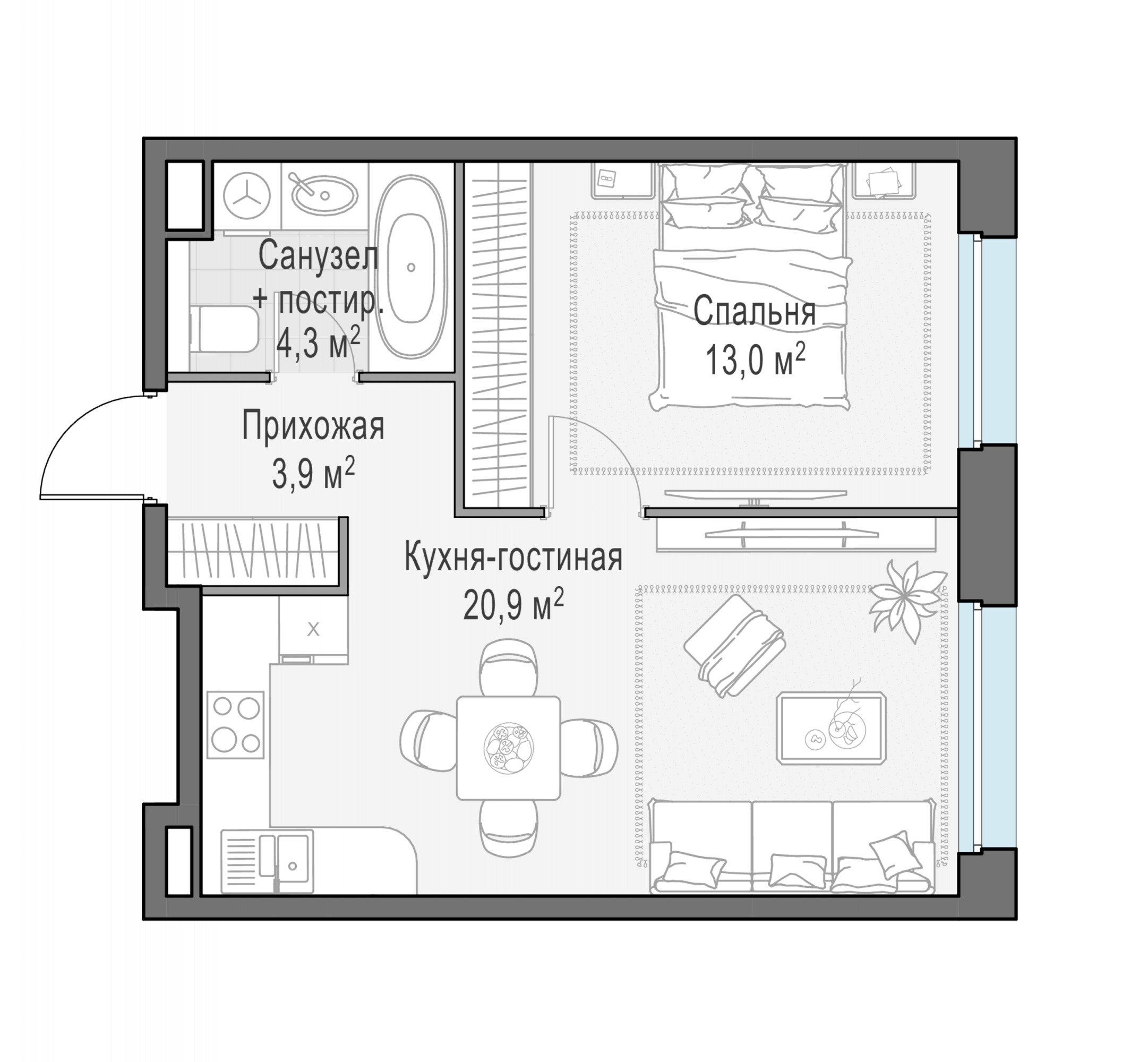 Представленные планировочные решения носят иллюстративный характер. Застройщик передаёт объект с планировкой, указанной в договоре участия в долевом строительстве. Любая перепланировка должна соответствовать требованиям государственных органов.