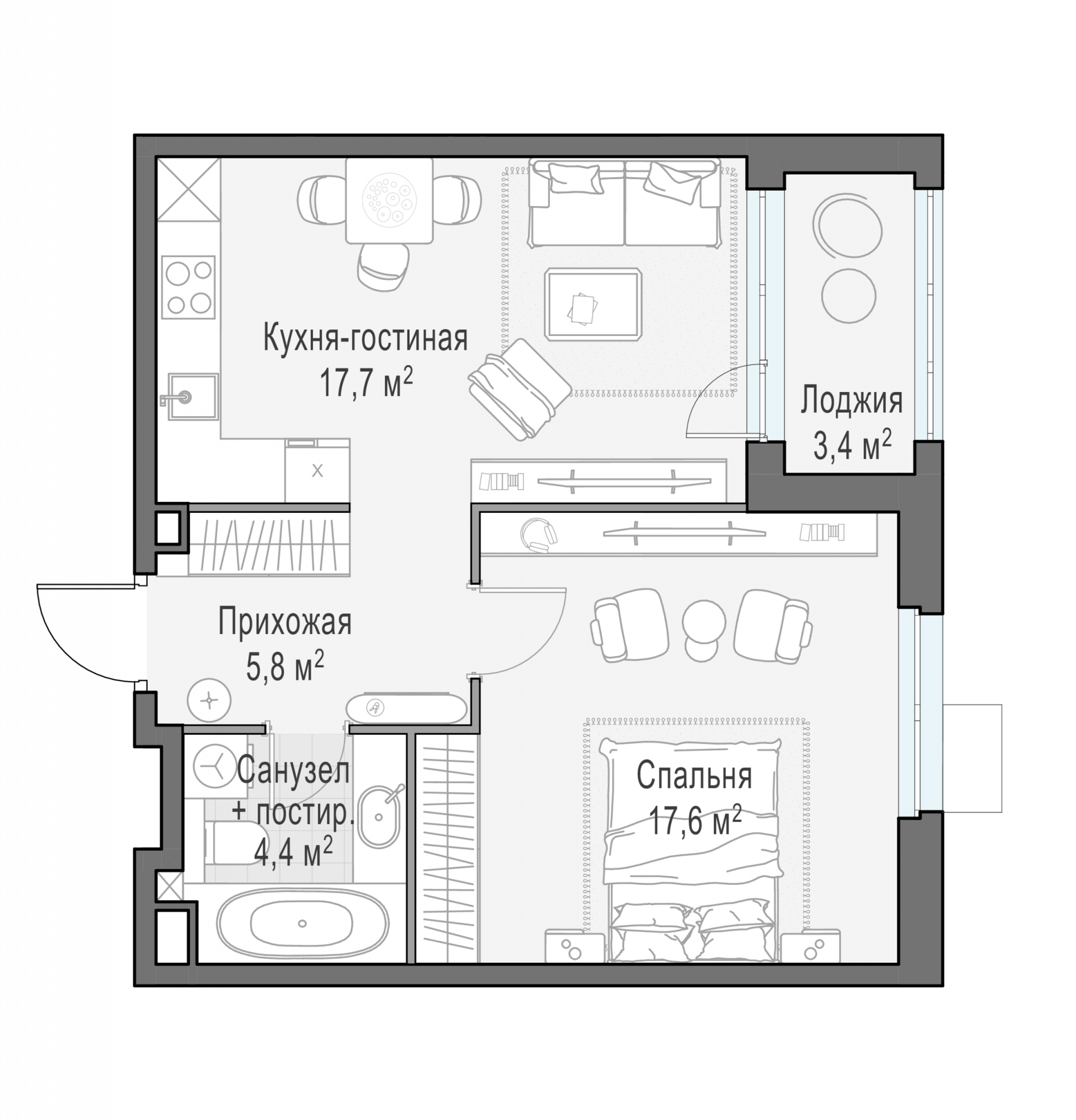 Представленные планировочные решения носят иллюстративный характер. Застройщик передаёт объект с планировкой, указанной в договоре участия в долевом строительстве. Любая перепланировка должна соответствовать требованиям государственных органов.