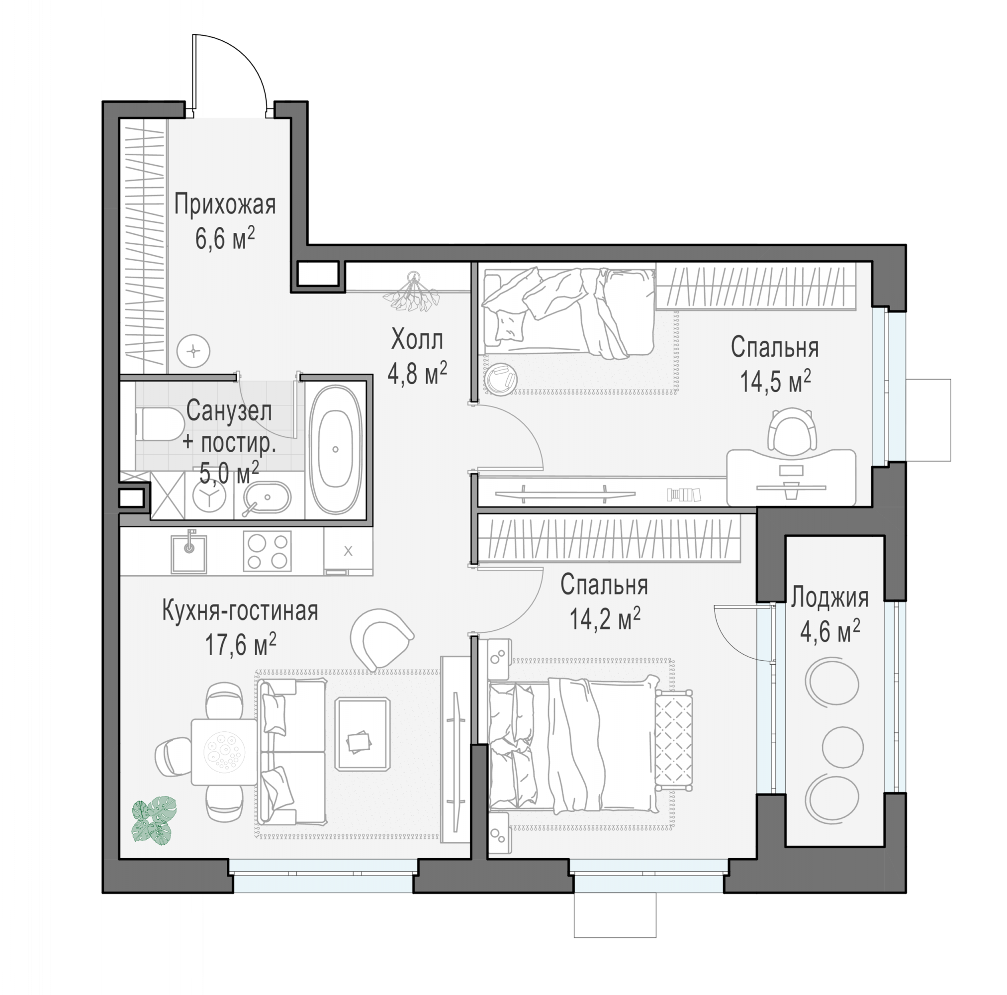 Представленные планировочные решения носят иллюстративный характер. Застройщик передаёт объект с планировкой, указанной в договоре участия в долевом строительстве. Любая перепланировка должна соответствовать требованиям государственных органов.