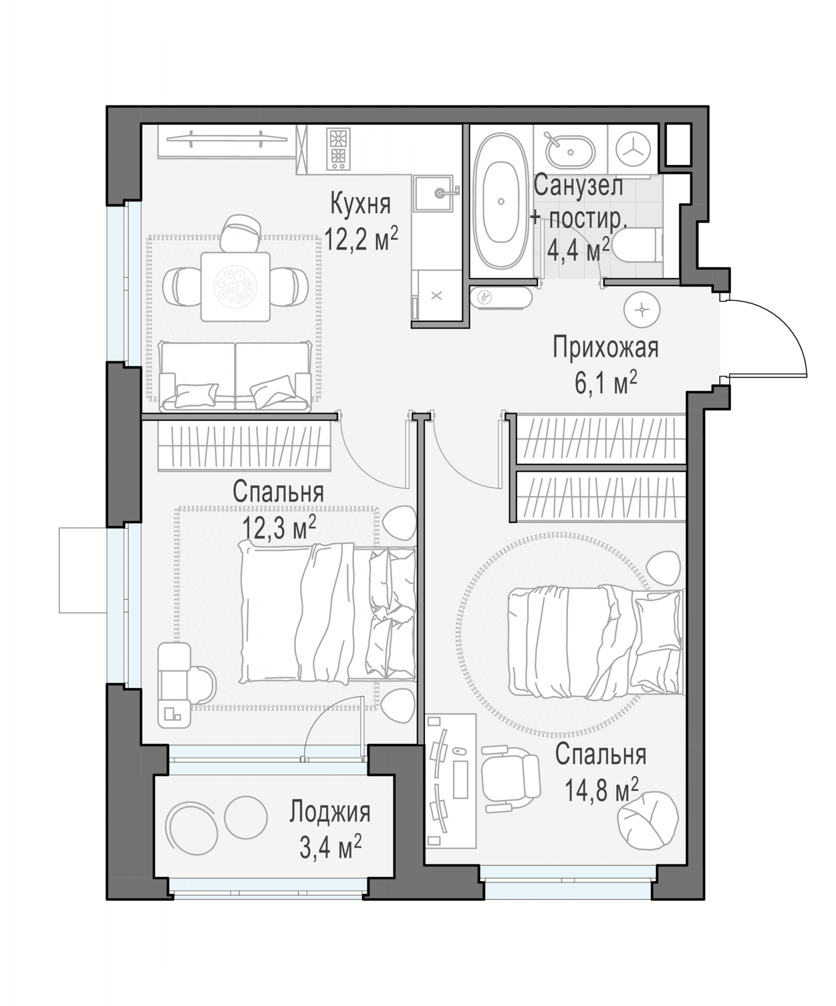 Представленные планировочные решения носят иллюстративный характер. Застройщик передаёт объект с планировкой, указанной в договоре участия в долевом строительстве. Любая перепланировка должна соответствовать требованиям государственных органов.