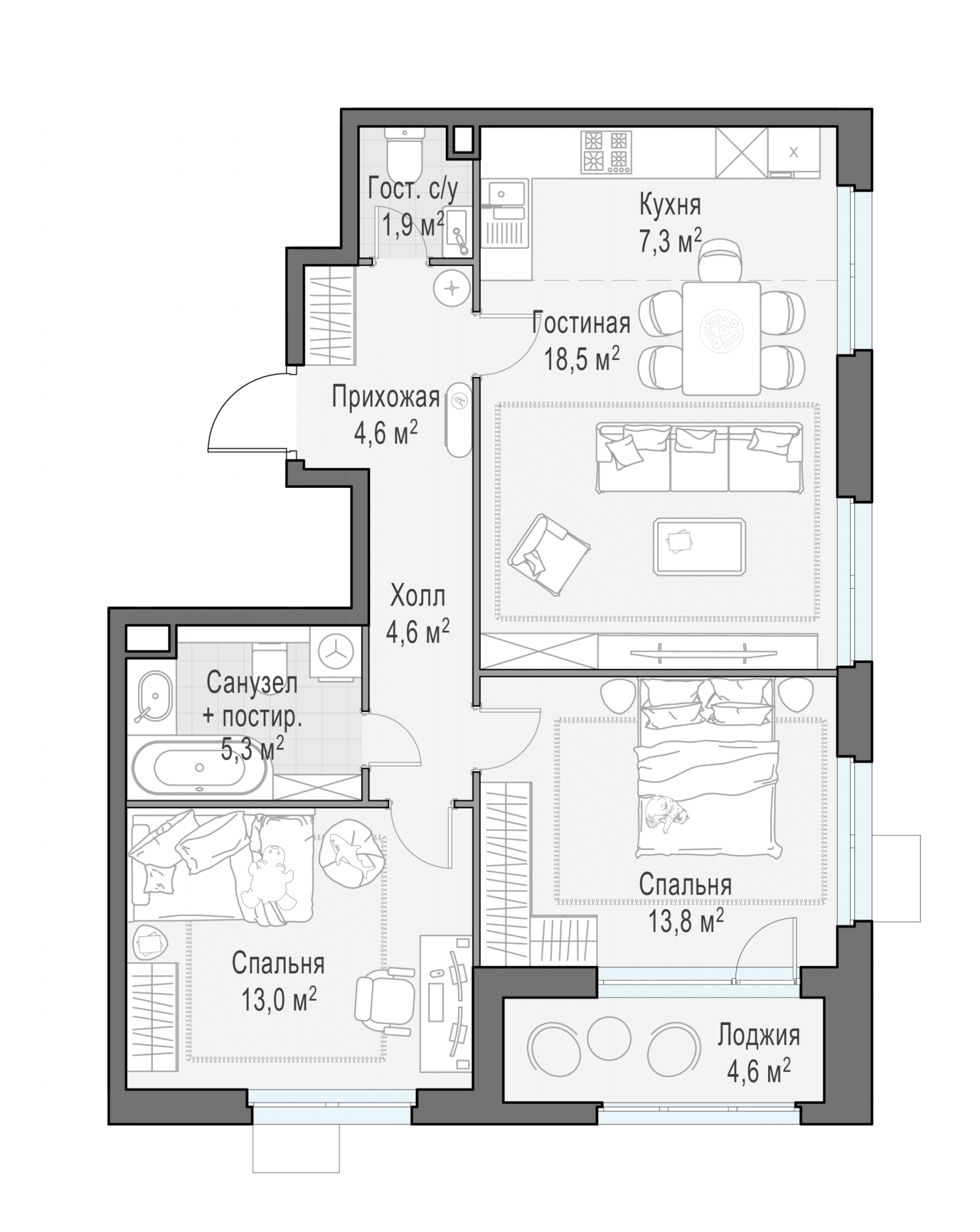 Представленные планировочные решения носят иллюстративный характер. Застройщик передаёт объект с планировкой, указанной в договоре участия в долевом строительстве. Любая перепланировка должна соответствовать требованиям государственных органов.