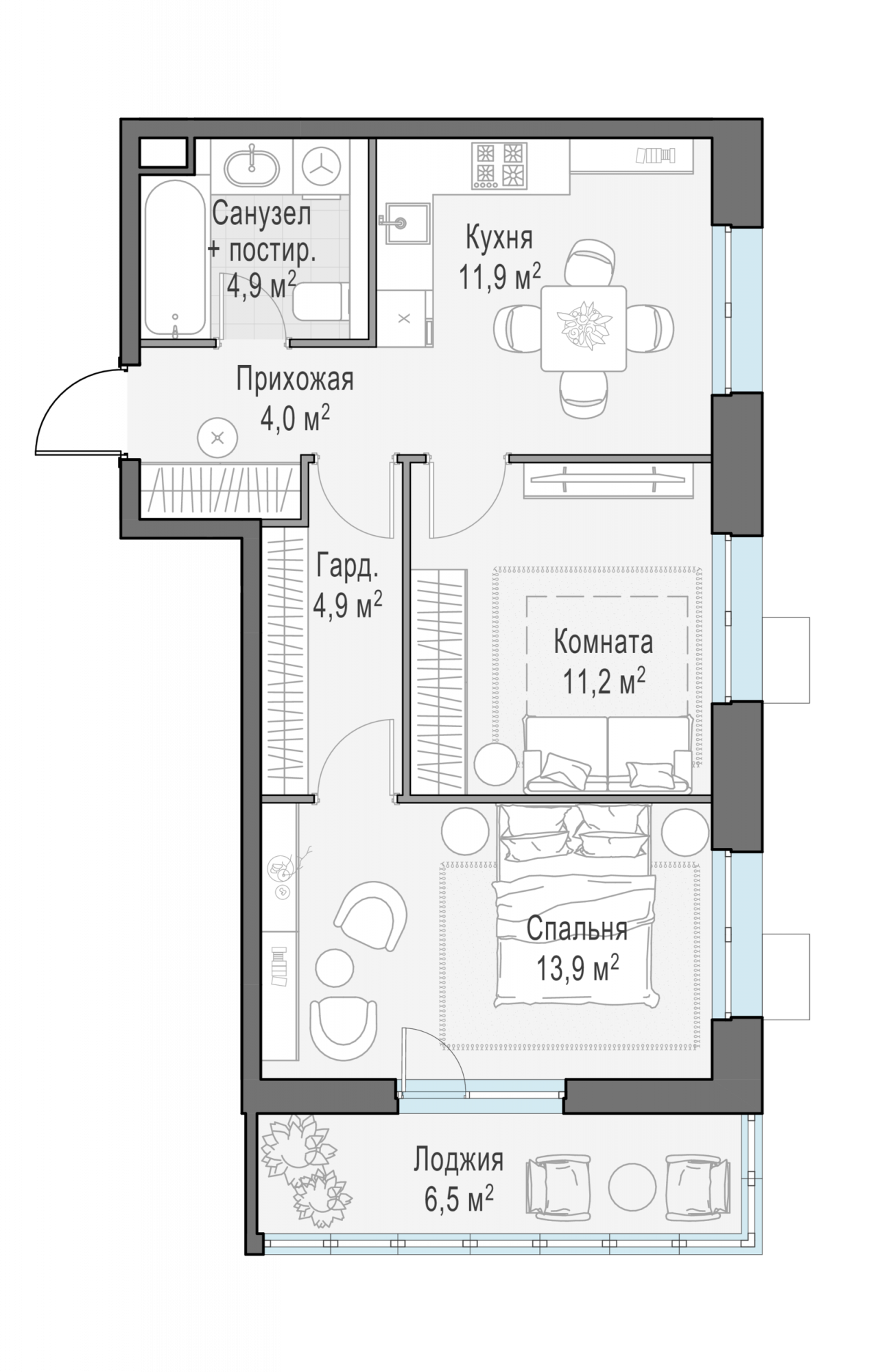 Представленные планировочные решения носят иллюстративный характер. Застройщик передаёт объект с планировкой, указанной в договоре участия в долевом строительстве. Любая перепланировка должна соответствовать требованиям государственных органов.