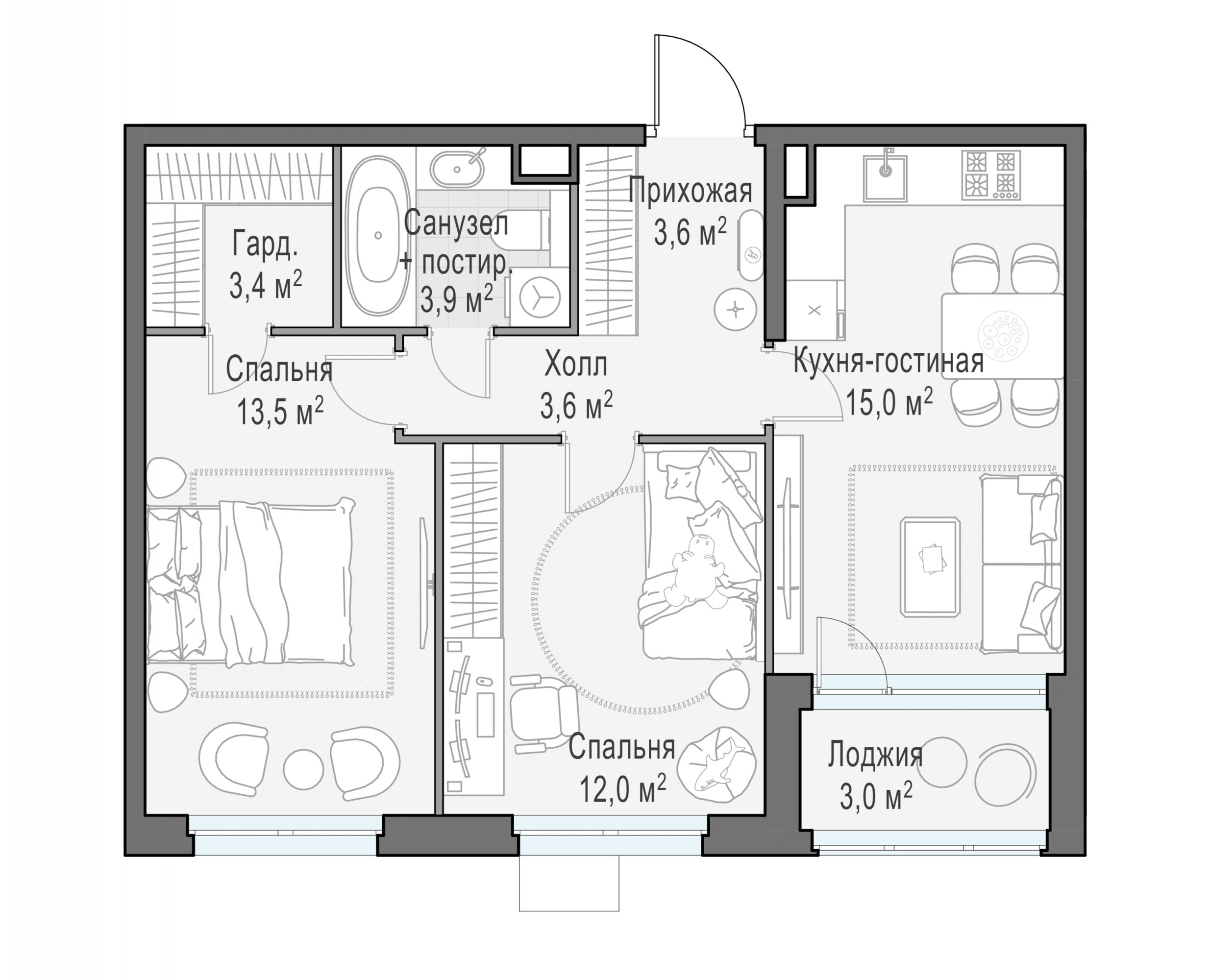 Представленные планировочные решения носят иллюстративный характер. Застройщик передаёт объект с планировкой, указанной в договоре участия в долевом строительстве. Любая перепланировка должна соответствовать требованиям государственных органов.
