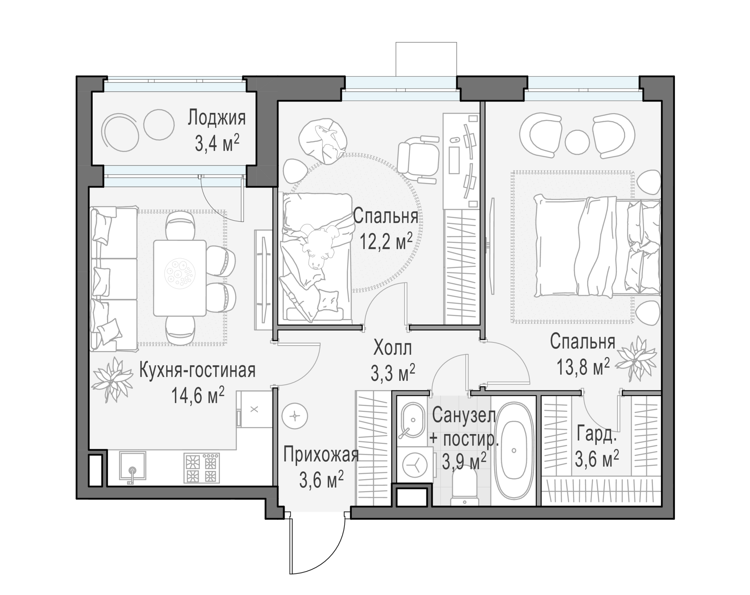 Представленные планировочные решения носят иллюстративный характер. Застройщик передаёт объект с планировкой, указанной в договоре участия в долевом строительстве. Любая перепланировка должна соответствовать требованиям государственных органов.