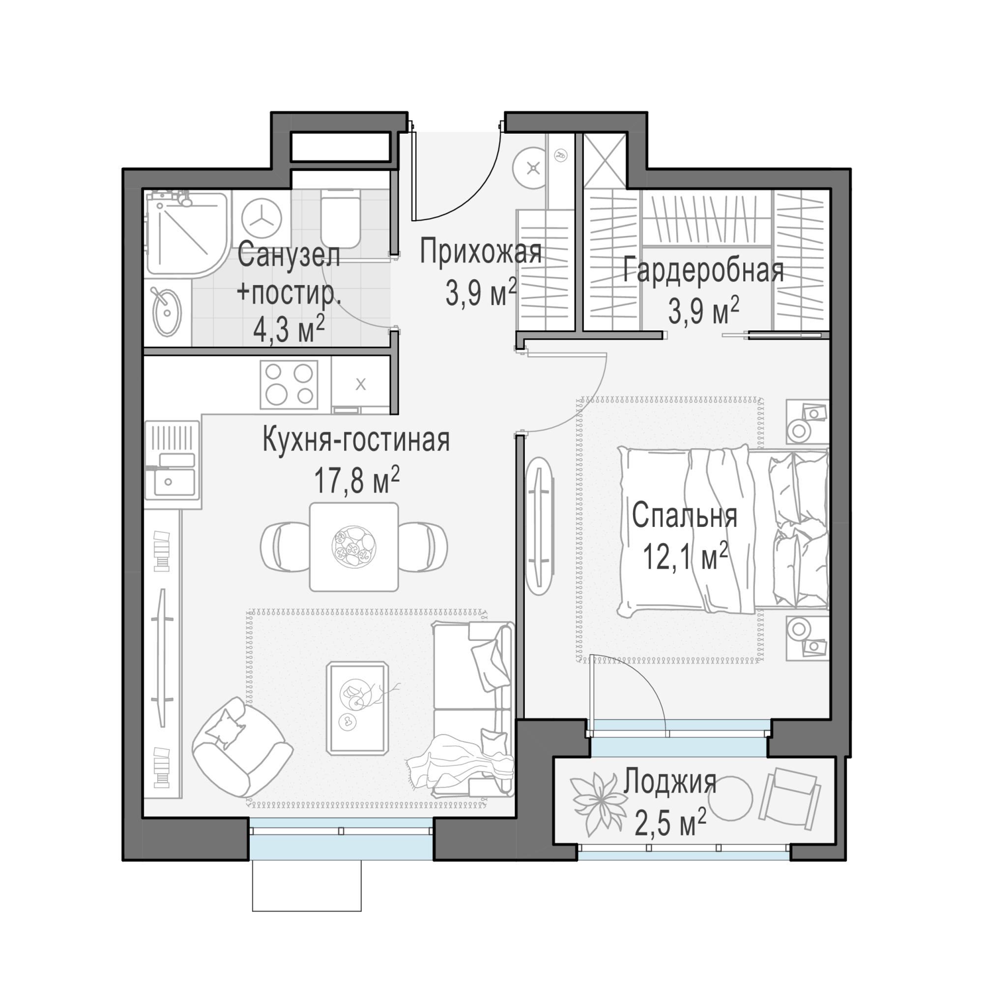 Представленные планировочные решения носят иллюстративный характер. Застройщик передаёт объект с планировкой, указанной в договоре участия в долевом строительстве. Любая перепланировка должна соответствовать требованиям государственных органов.