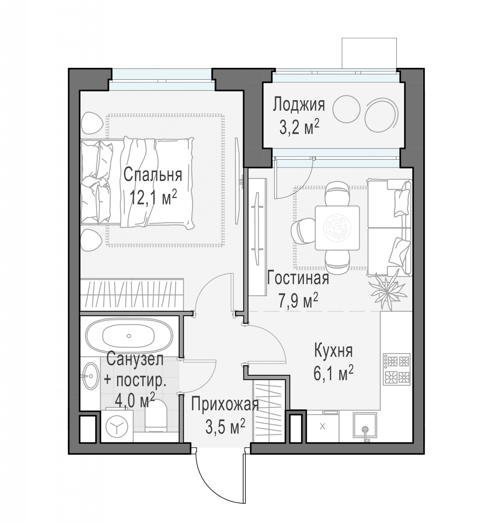 Представленные планировочные решения носят иллюстративный характер. Застройщик передаёт объект с планировкой, указанной в договоре участия в долевом строительстве. Любая перепланировка должна соответствовать требованиям государственных органов.