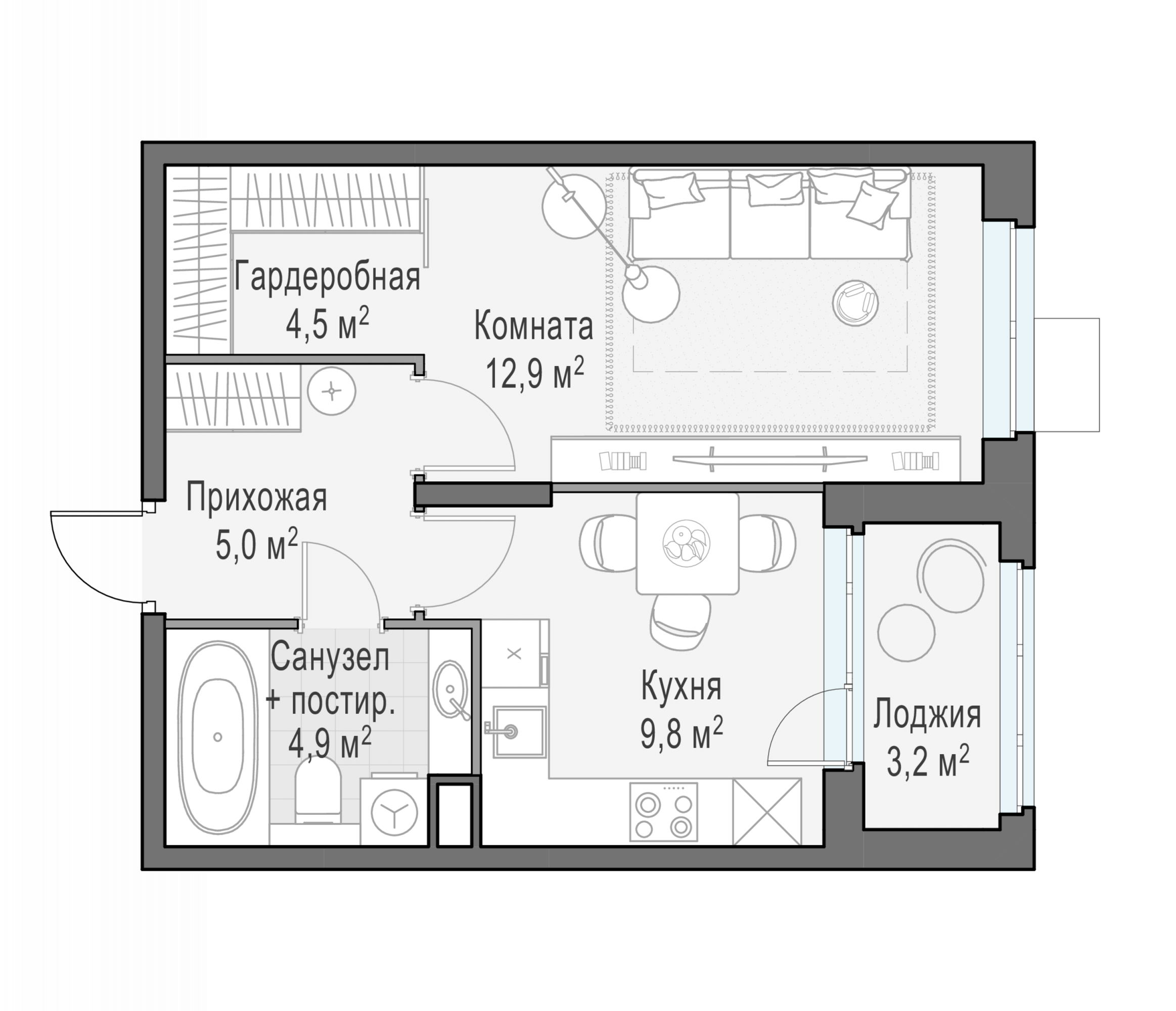 Представленные планировочные решения носят иллюстративный характер. Застройщик передаёт объект с планировкой, указанной в договоре участия в долевом строительстве. Любая перепланировка должна соответствовать требованиям государственных органов.