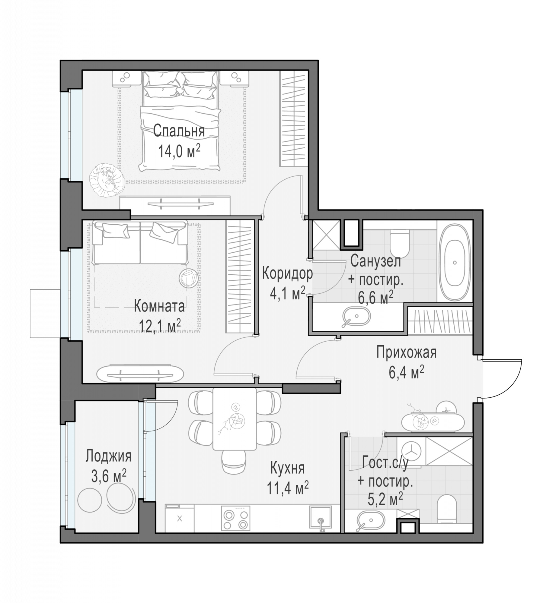 Представленные планировочные решения носят иллюстративный характер. Застройщик передаёт объект с планировкой, указанной в договоре участия в долевом строительстве. Любая перепланировка должна соответствовать требованиям государственных органов.