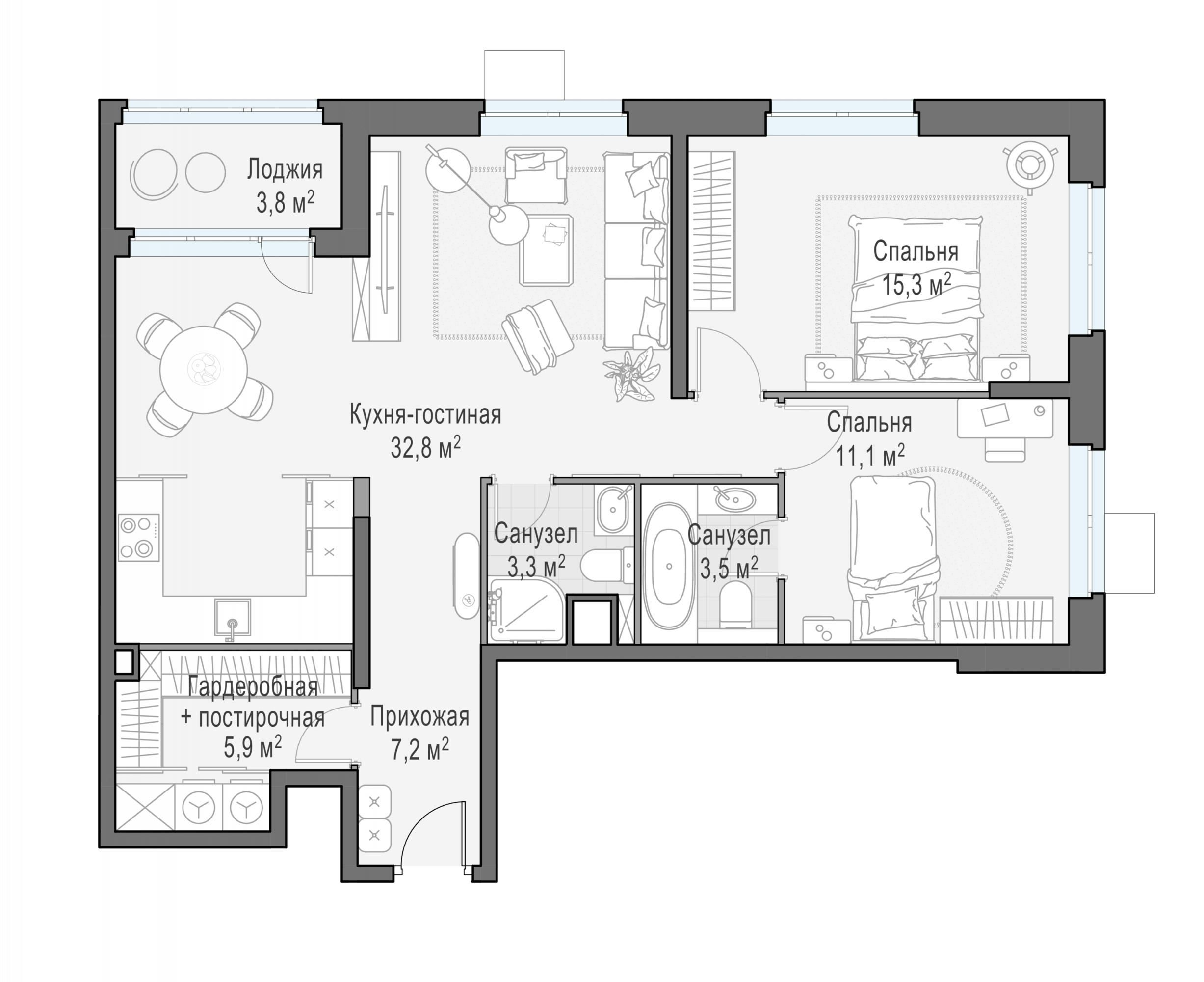 Представленные планировочные решения носят иллюстративный характер. Застройщик передаёт объект с планировкой, указанной в договоре участия в долевом строительстве. Любая перепланировка должна соответствовать требованиям государственных органов.
