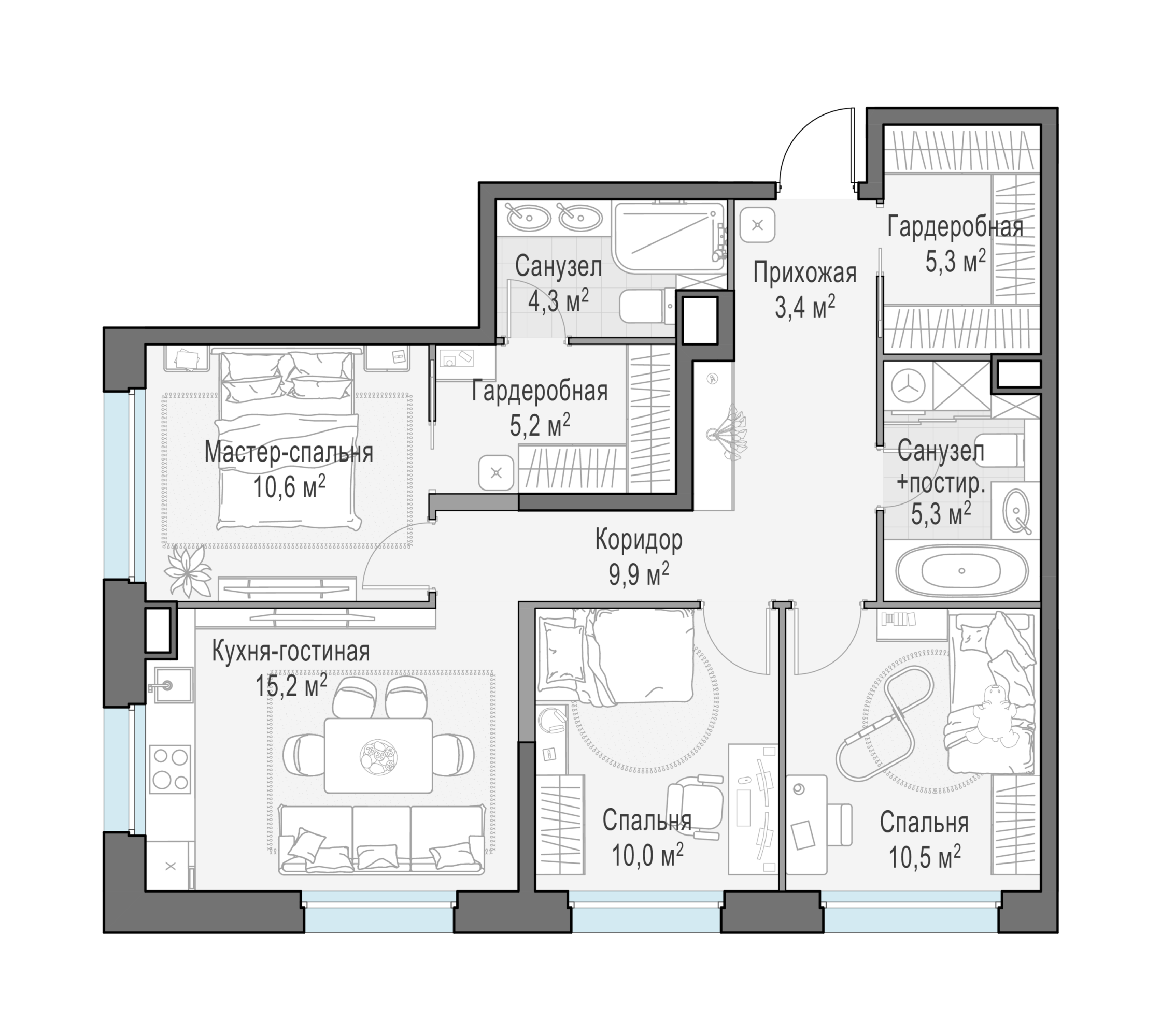 Представленные планировочные решения носят иллюстративный характер. Застройщик передаёт объект с планировкой, указанной в договоре участия в долевом строительстве. Любая перепланировка должна соответствовать требованиям государственных органов.