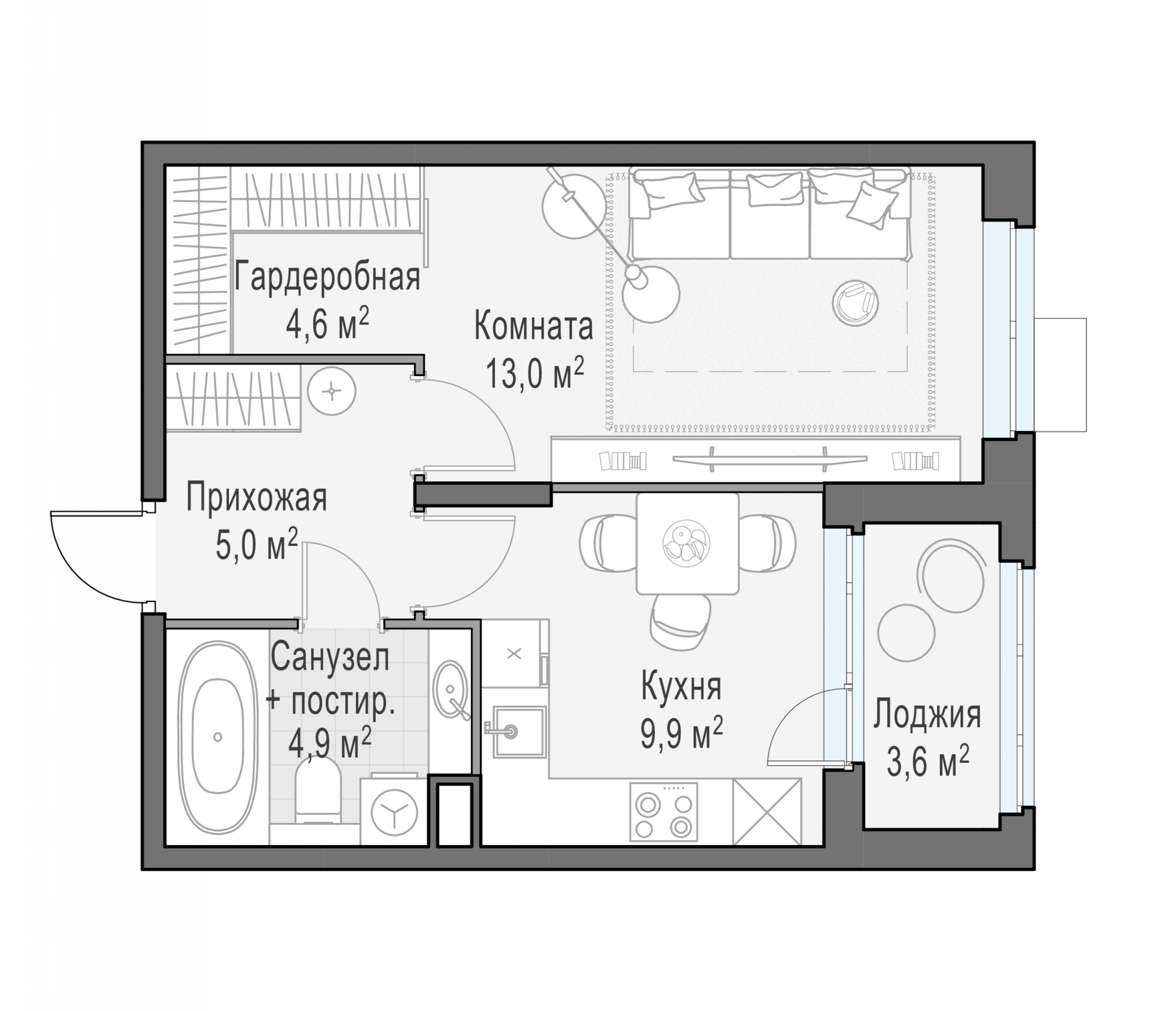 Представленные планировочные решения носят иллюстративный характер. Застройщик передаёт объект с планировкой, указанной в договоре участия в долевом строительстве. Любая перепланировка должна соответствовать требованиям государственных органов.
