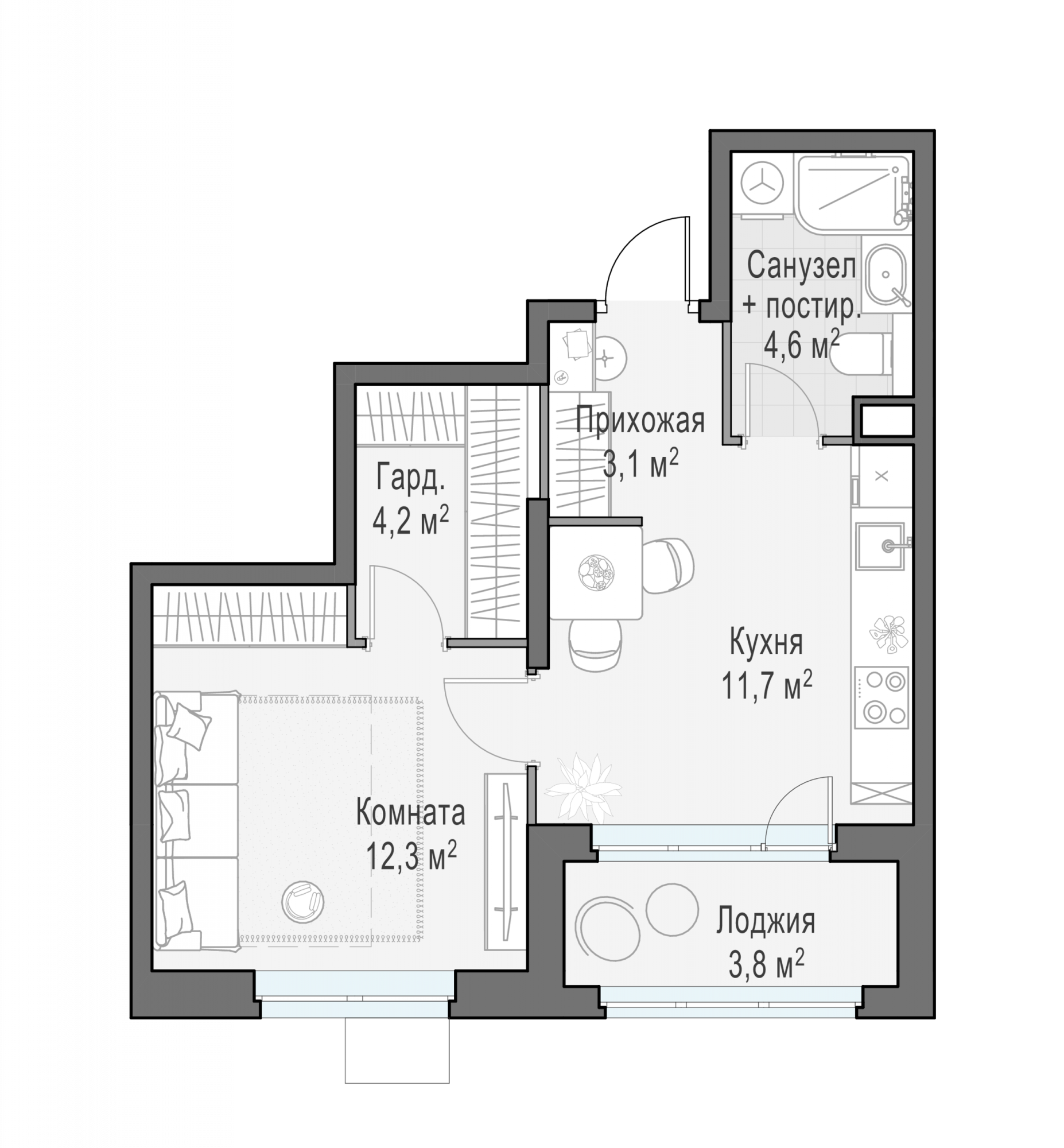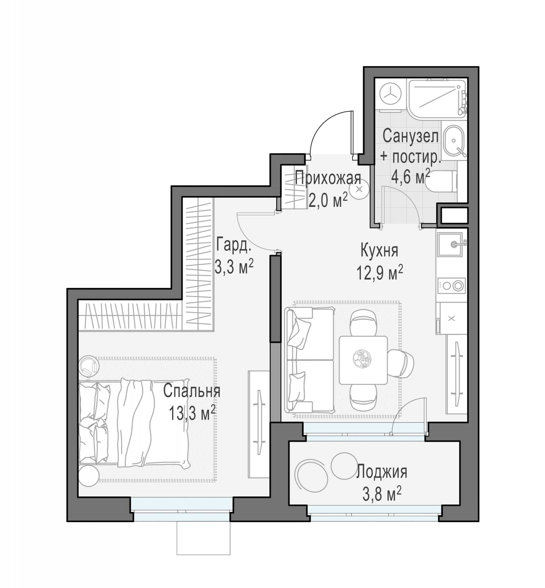 Представленные планировочные решения носят иллюстративный характер. Застройщик передаёт объект с планировкой, указанной в договоре участия в долевом строительстве. Любая перепланировка должна соответствовать требованиям государственных органов.