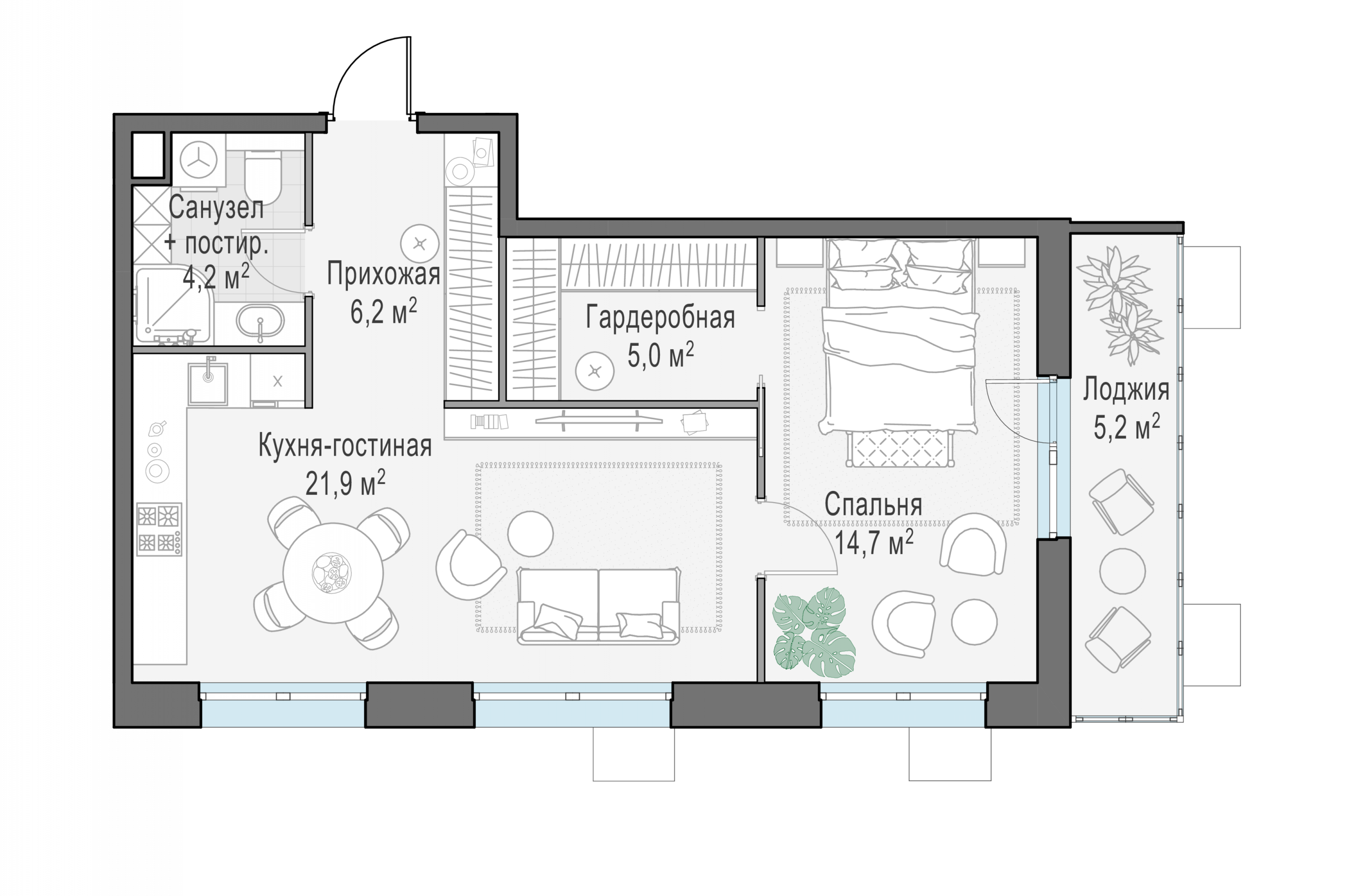 Представленные планировочные решения носят иллюстративный характер. Застройщик передаёт объект с планировкой, указанной в договоре участия в долевом строительстве. Любая перепланировка должна соответствовать требованиям государственных органов.