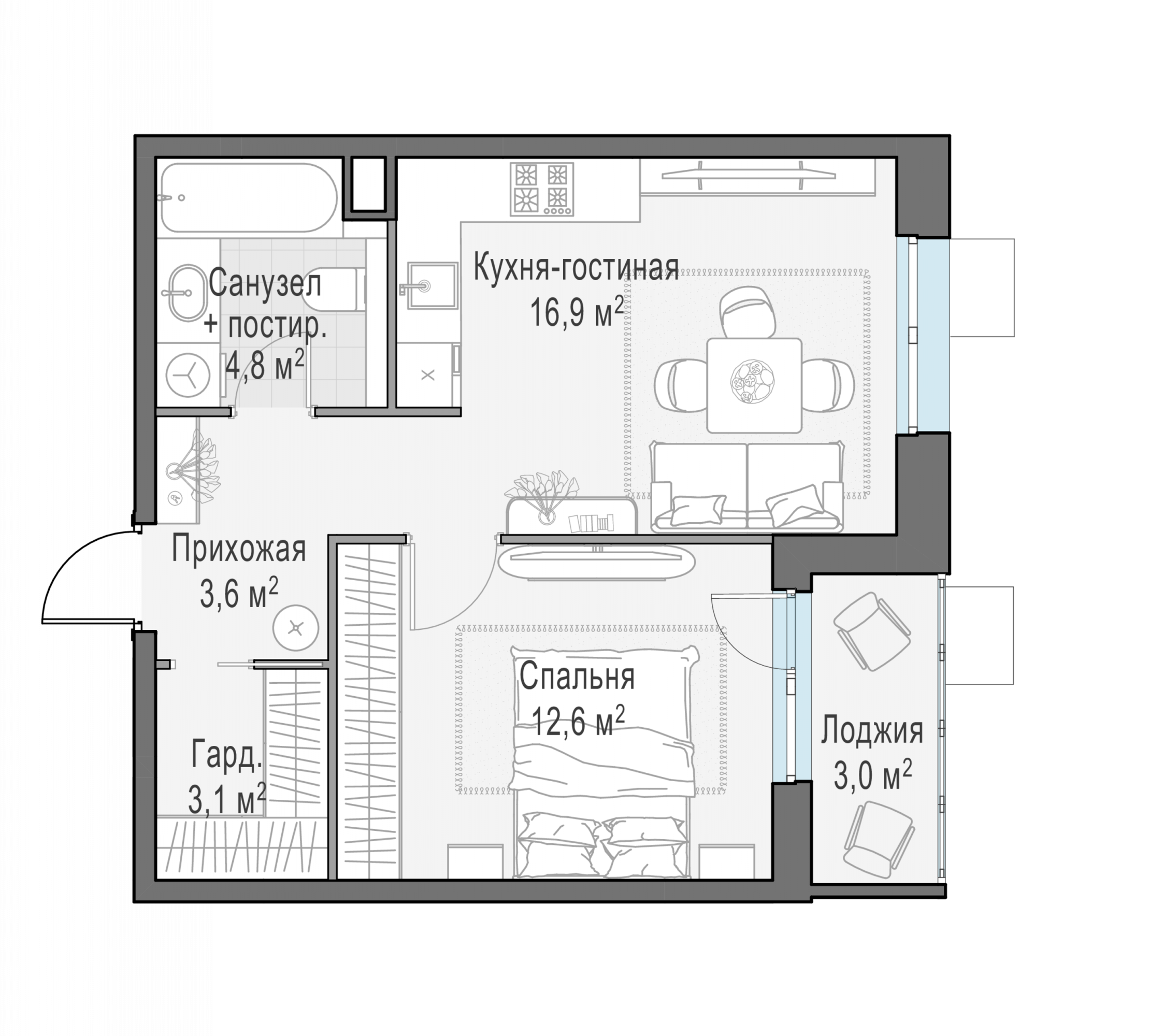 Представленные планировочные решения носят иллюстративный характер. Застройщик передаёт объект с планировкой, указанной в договоре участия в долевом строительстве. Любая перепланировка должна соответствовать требованиям государственных органов.