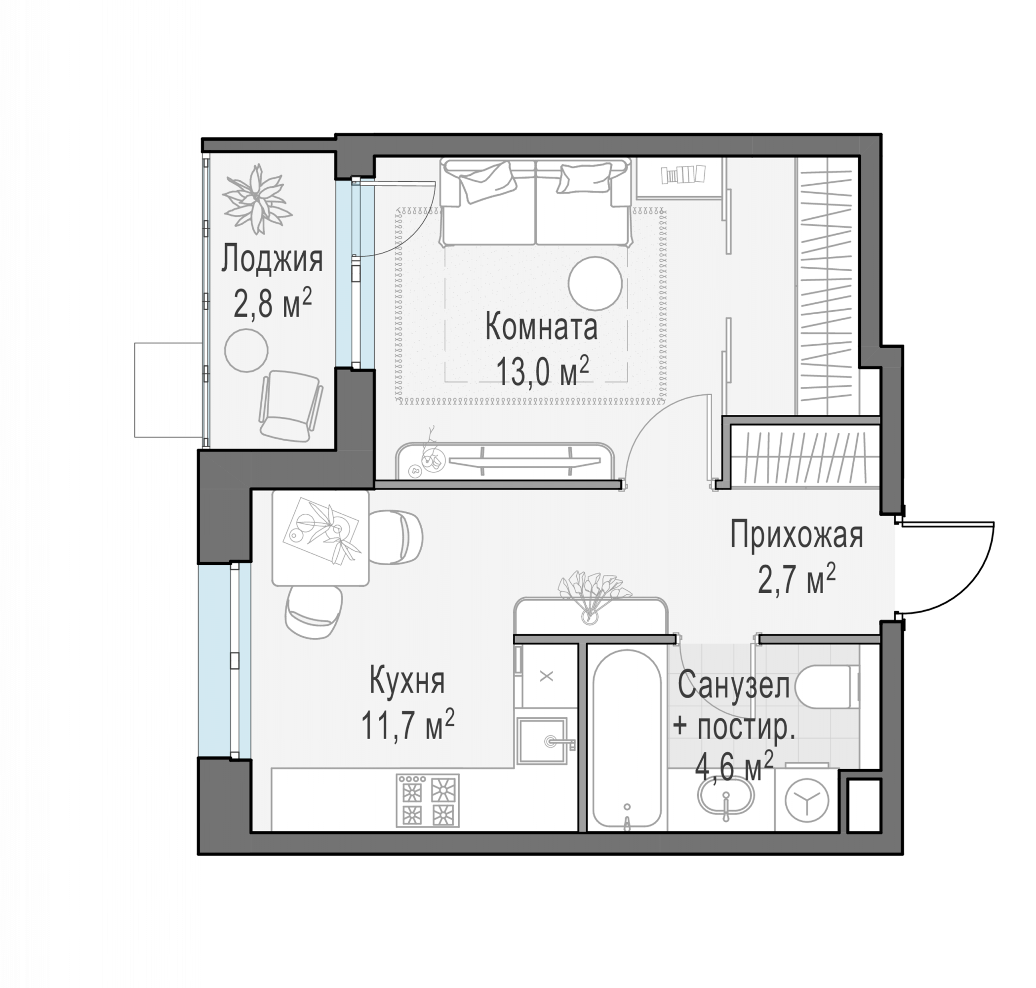 Представленные планировочные решения носят иллюстративный характер. Застройщик передаёт объект с планировкой, указанной в договоре участия в долевом строительстве. Любая перепланировка должна соответствовать требованиям государственных органов.