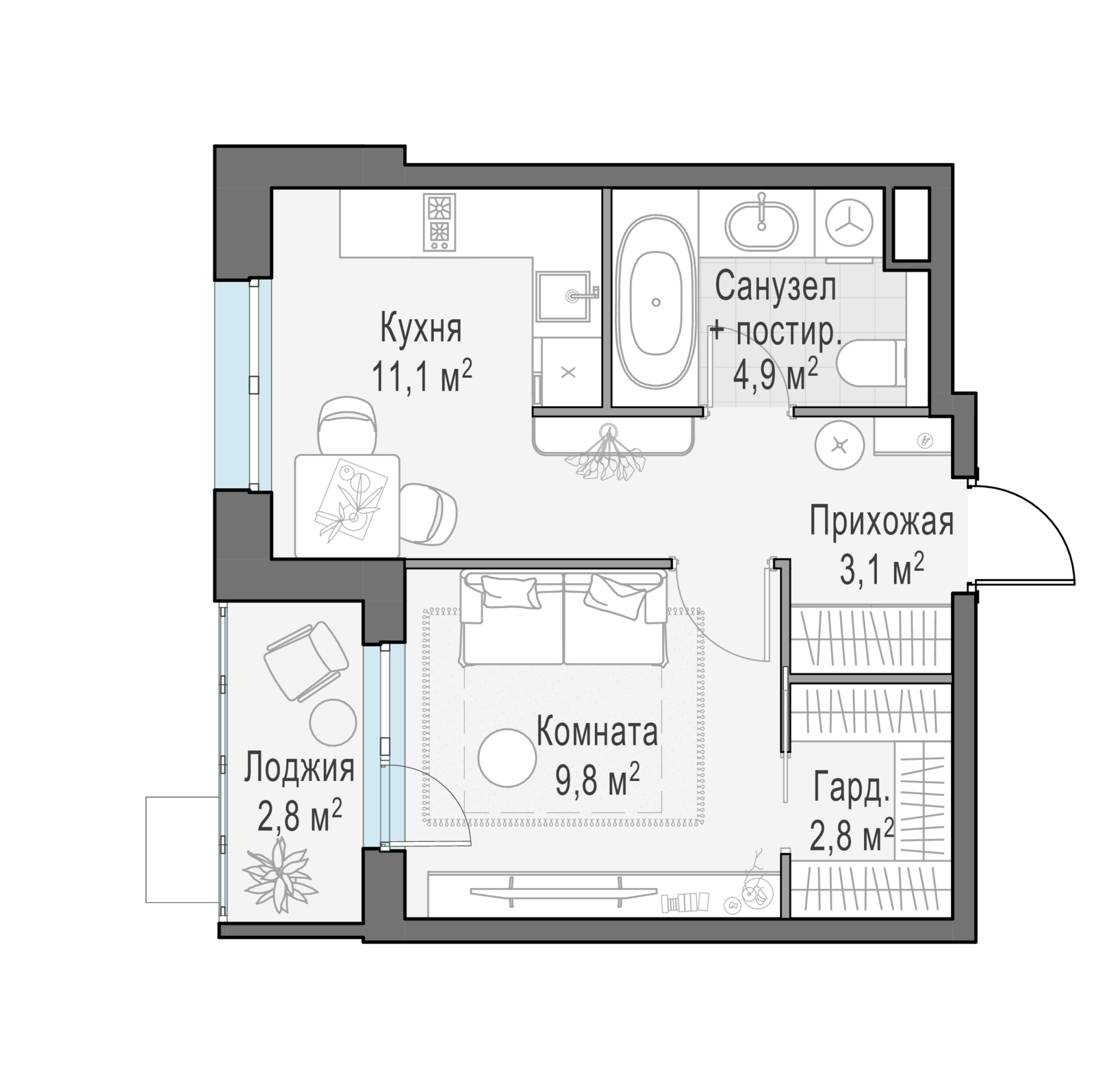 Представленные планировочные решения носят иллюстративный характер. Застройщик передаёт объект с планировкой, указанной в договоре участия в долевом строительстве. Любая перепланировка должна соответствовать требованиям государственных органов.