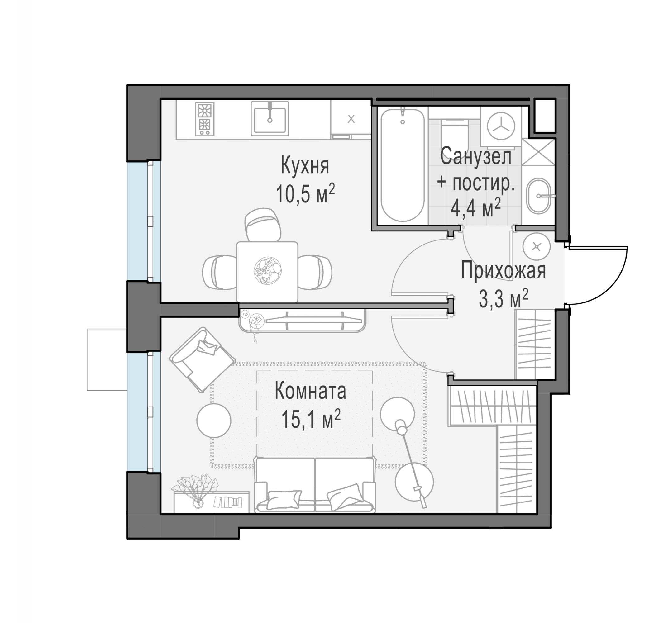 Представленные планировочные решения носят иллюстративный характер. Застройщик передаёт объект с планировкой, указанной в договоре участия в долевом строительстве. Любая перепланировка должна соответствовать требованиям государственных органов.