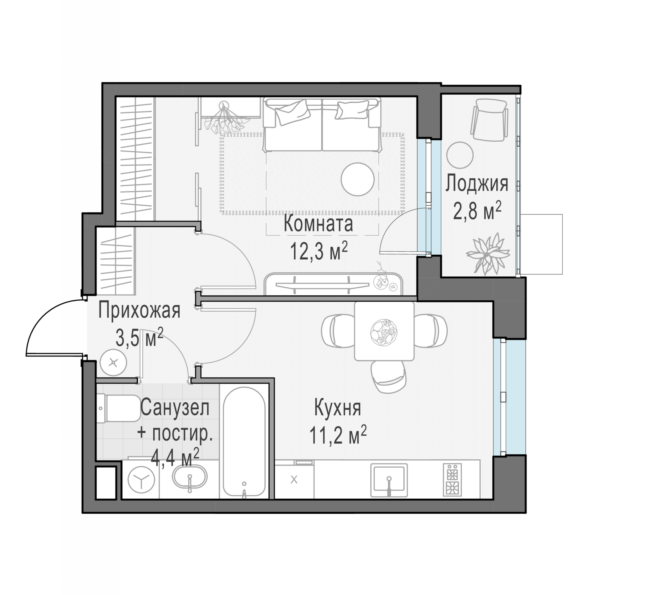 Представленные планировочные решения носят иллюстративный характер. Застройщик передаёт объект с планировкой, указанной в договоре участия в долевом строительстве. Любая перепланировка должна соответствовать требованиям государственных органов.