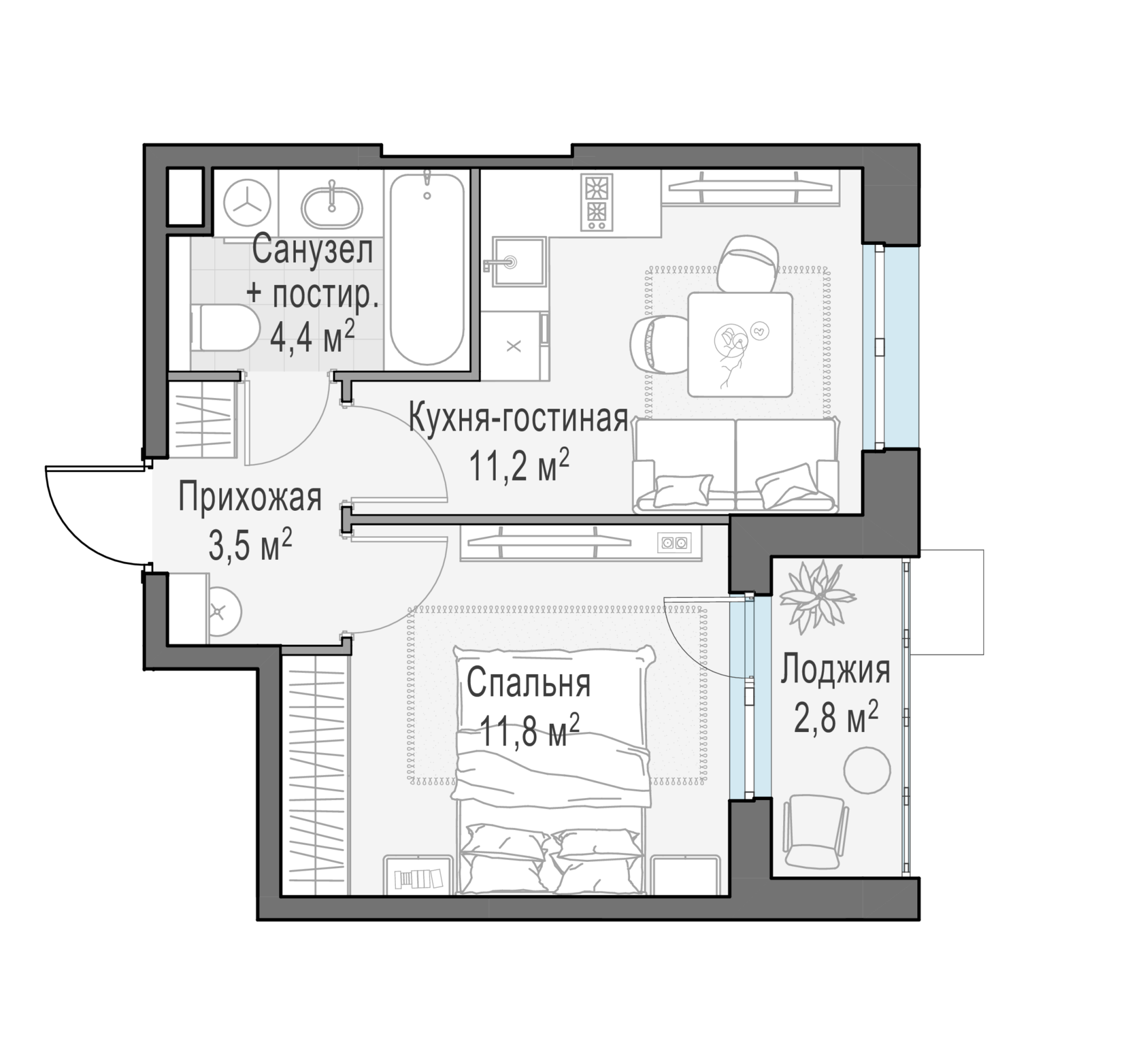 Представленные планировочные решения носят иллюстративный характер. Застройщик передаёт объект с планировкой, указанной в договоре участия в долевом строительстве. Любая перепланировка должна соответствовать требованиям государственных органов.