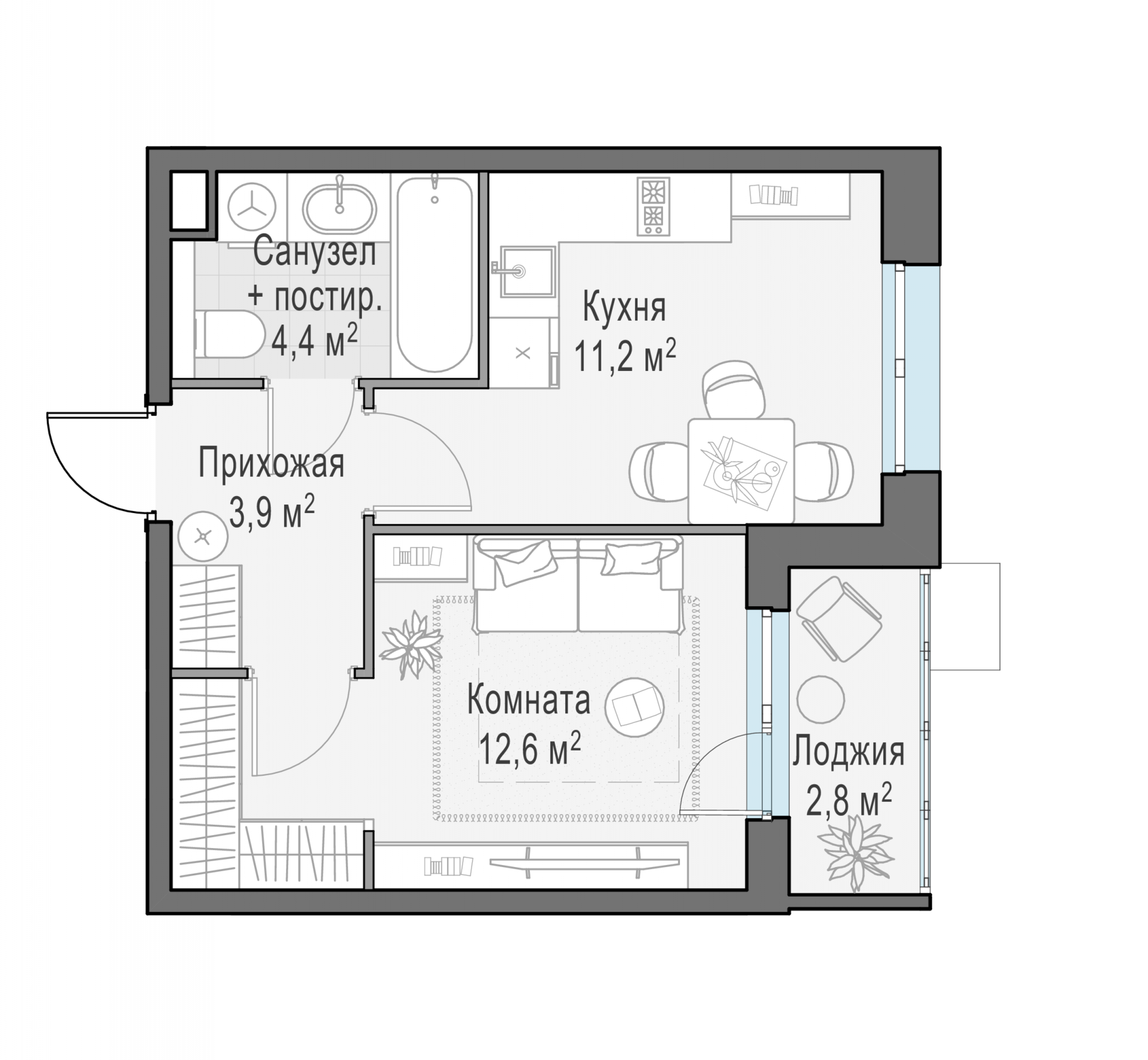 Представленные планировочные решения носят иллюстративный характер. Застройщик передаёт объект с планировкой, указанной в договоре участия в долевом строительстве. Любая перепланировка должна соответствовать требованиям государственных органов.
