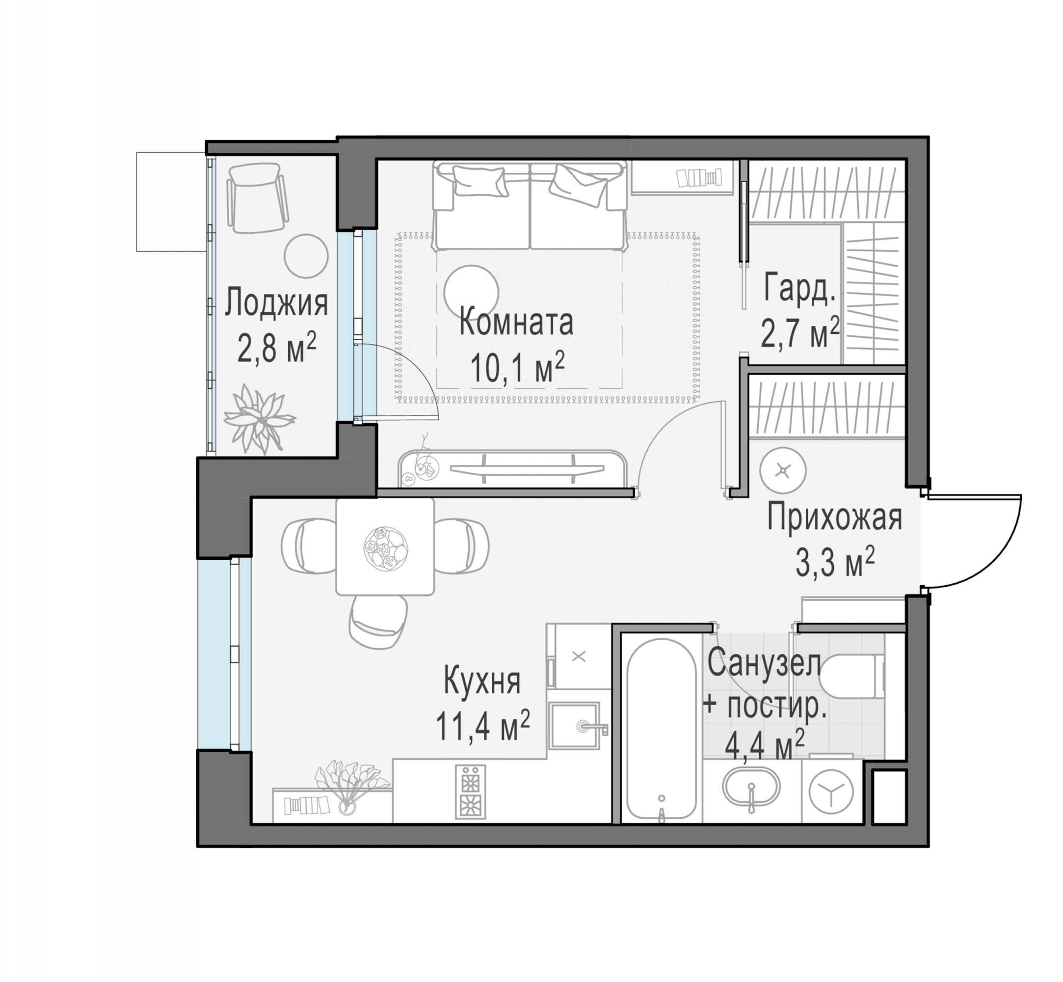 Представленные планировочные решения носят иллюстративный характер. Застройщик передаёт объект с планировкой, указанной в договоре участия в долевом строительстве. Любая перепланировка должна соответствовать требованиям государственных органов.
