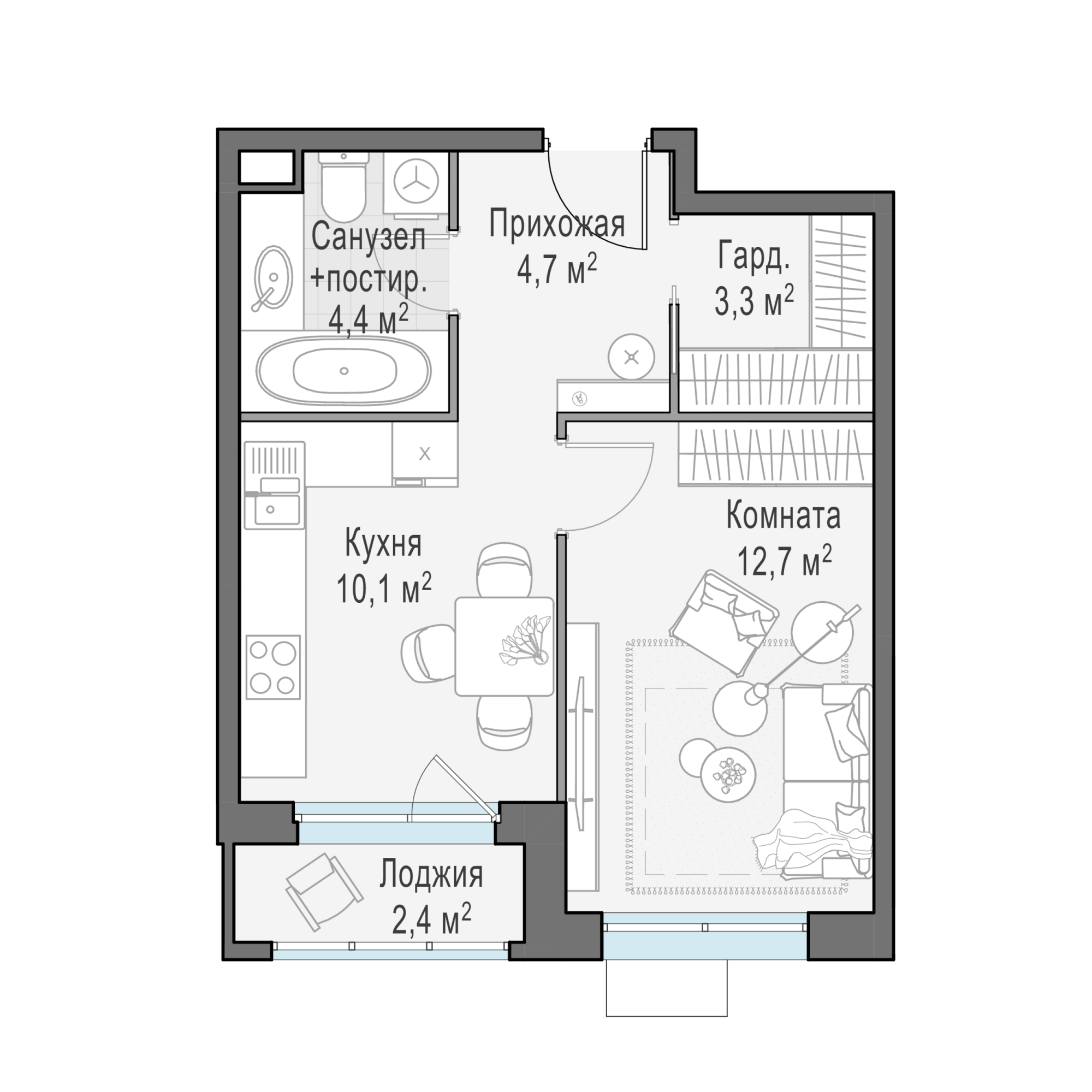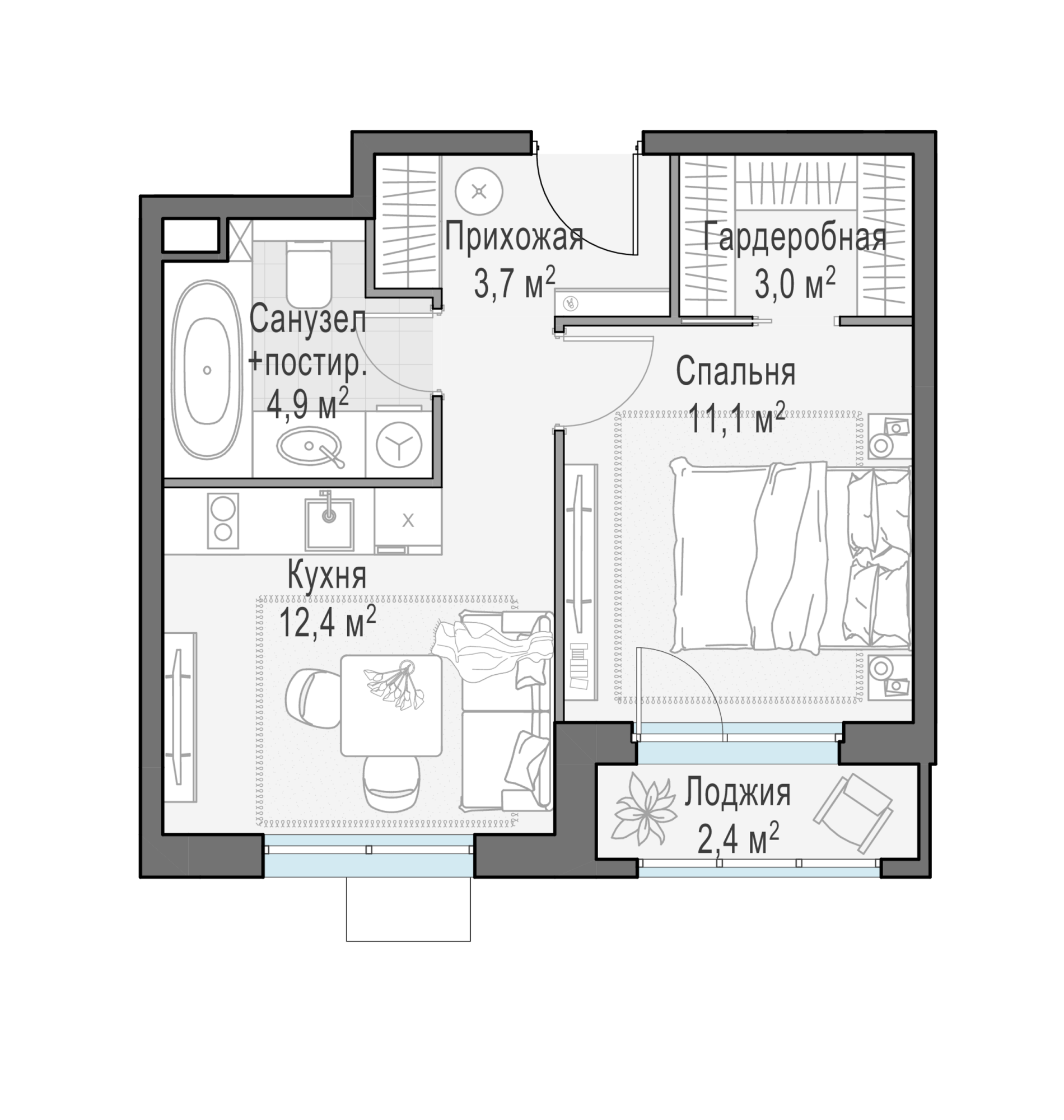 Представленные планировочные решения носят иллюстративный характер. Застройщик передаёт объект с планировкой, указанной в договоре участия в долевом строительстве. Любая перепланировка должна соответствовать требованиям государственных органов.