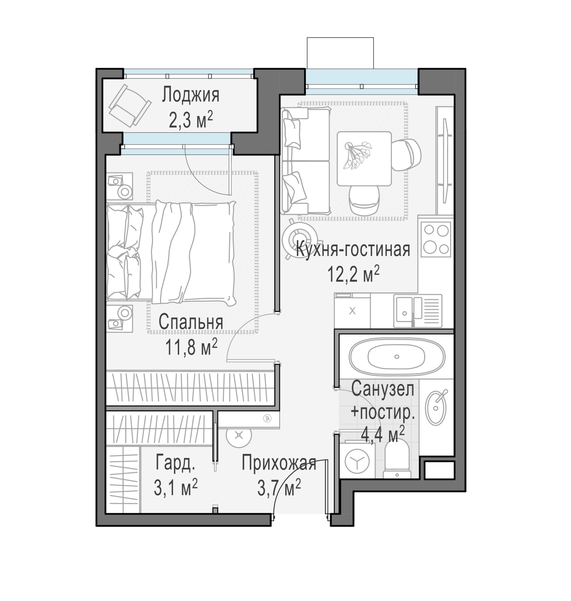 Квартира №555 31.8 м²