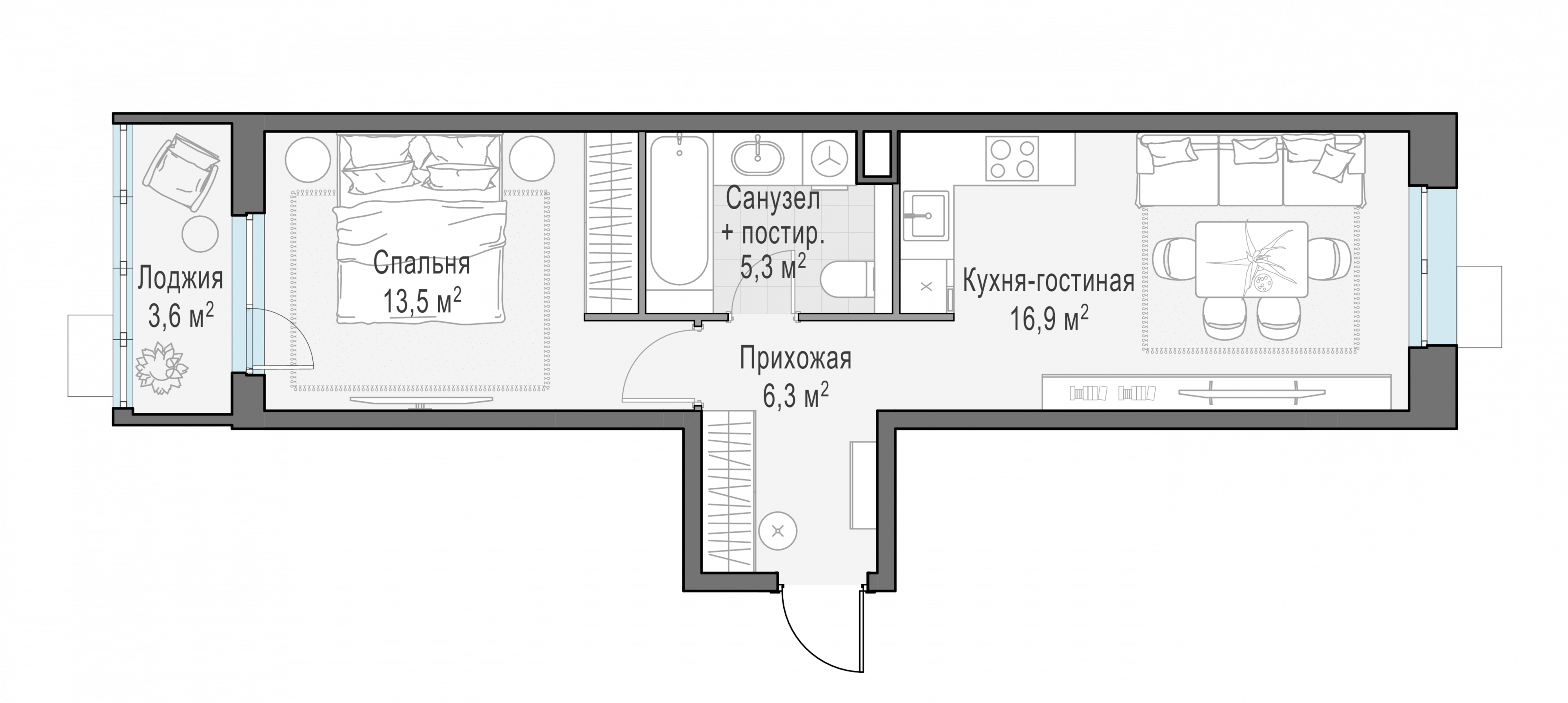Представленные планировочные решения носят иллюстративный характер. Застройщик передаёт объект с планировкой, указанной в договоре участия в долевом строительстве. Любая перепланировка должна соответствовать требованиям государственных органов.