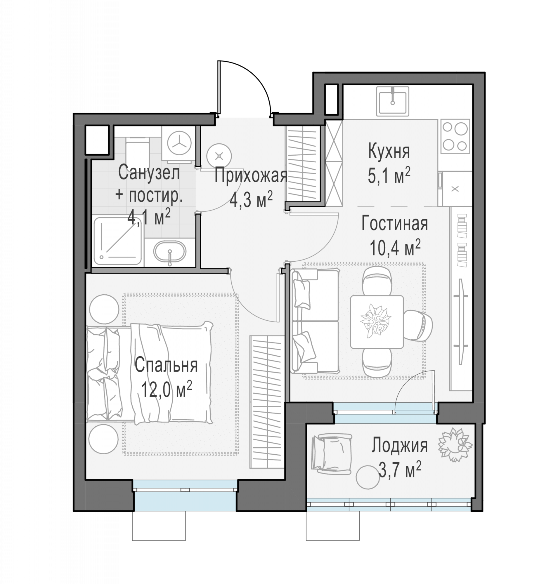Представленные планировочные решения носят иллюстративный характер. Застройщик передаёт объект с планировкой, указанной в договоре участия в долевом строительстве. Любая перепланировка должна соответствовать требованиям государственных органов.