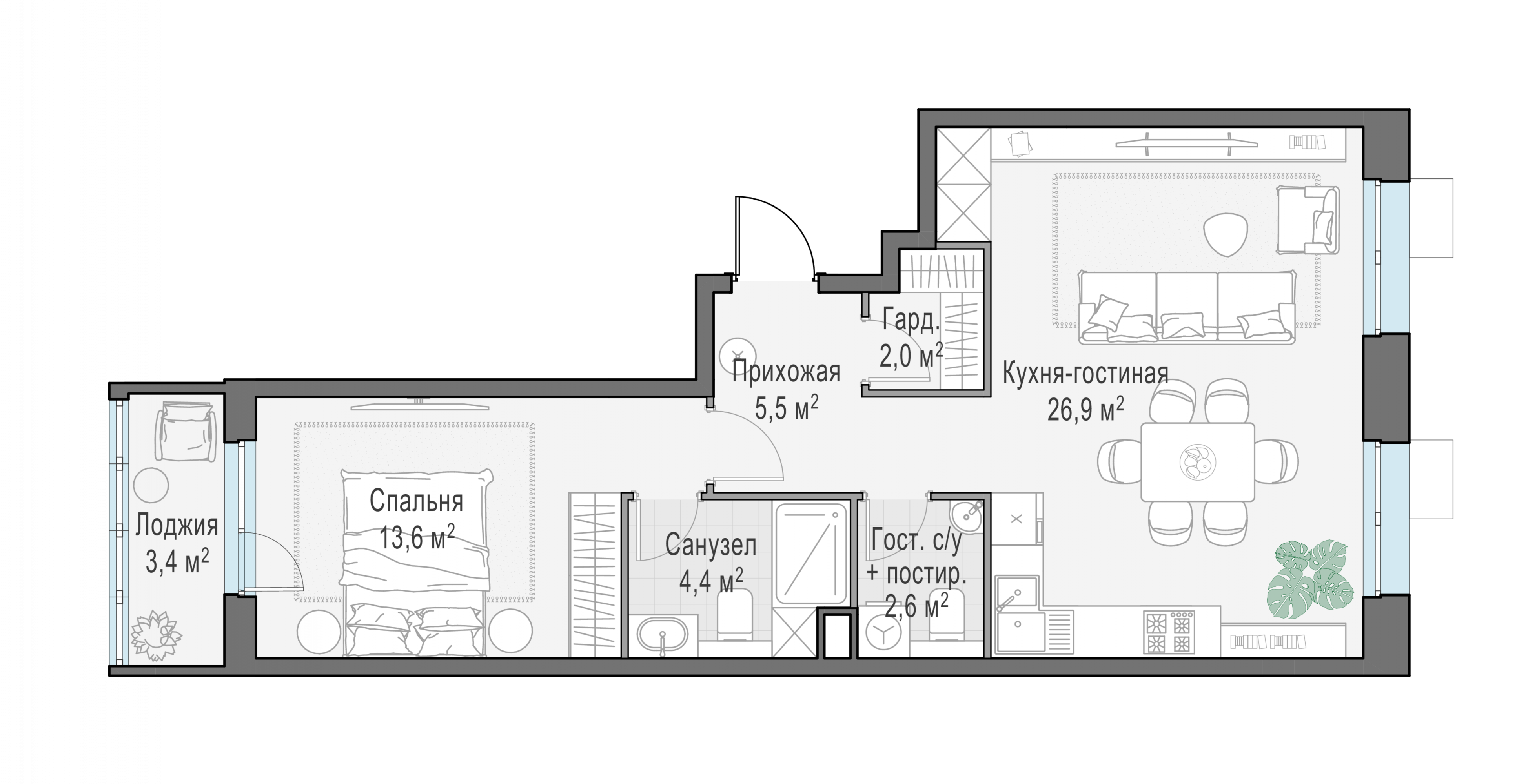 Представленные планировочные решения носят иллюстративный характер. Застройщик передаёт объект с планировкой, указанной в договоре участия в долевом строительстве. Любая перепланировка должна соответствовать требованиям государственных органов.