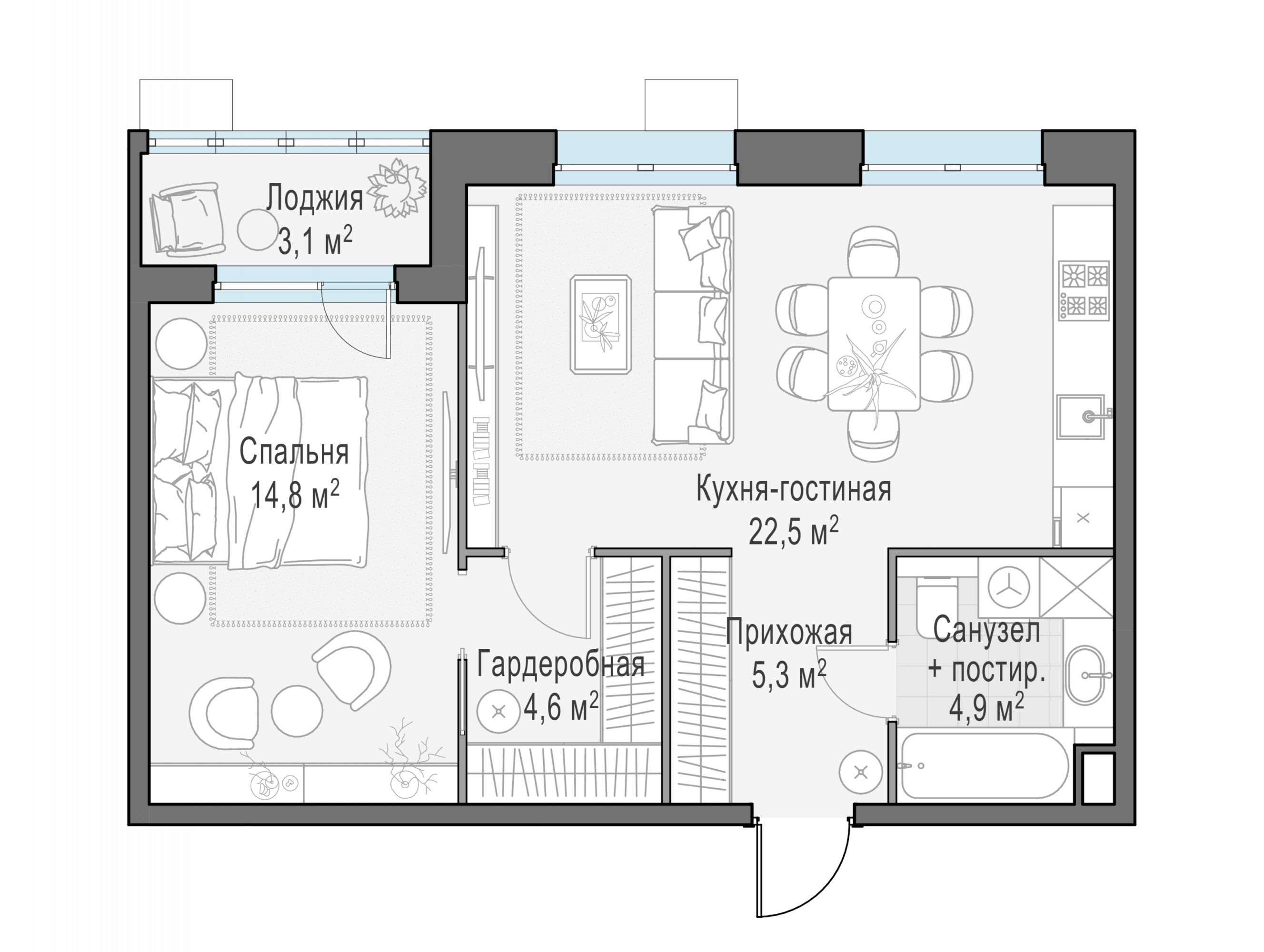 Представленные планировочные решения носят иллюстративный характер. Застройщик передаёт объект с планировкой, указанной в договоре участия в долевом строительстве. Любая перепланировка должна соответствовать требованиям государственных органов.
